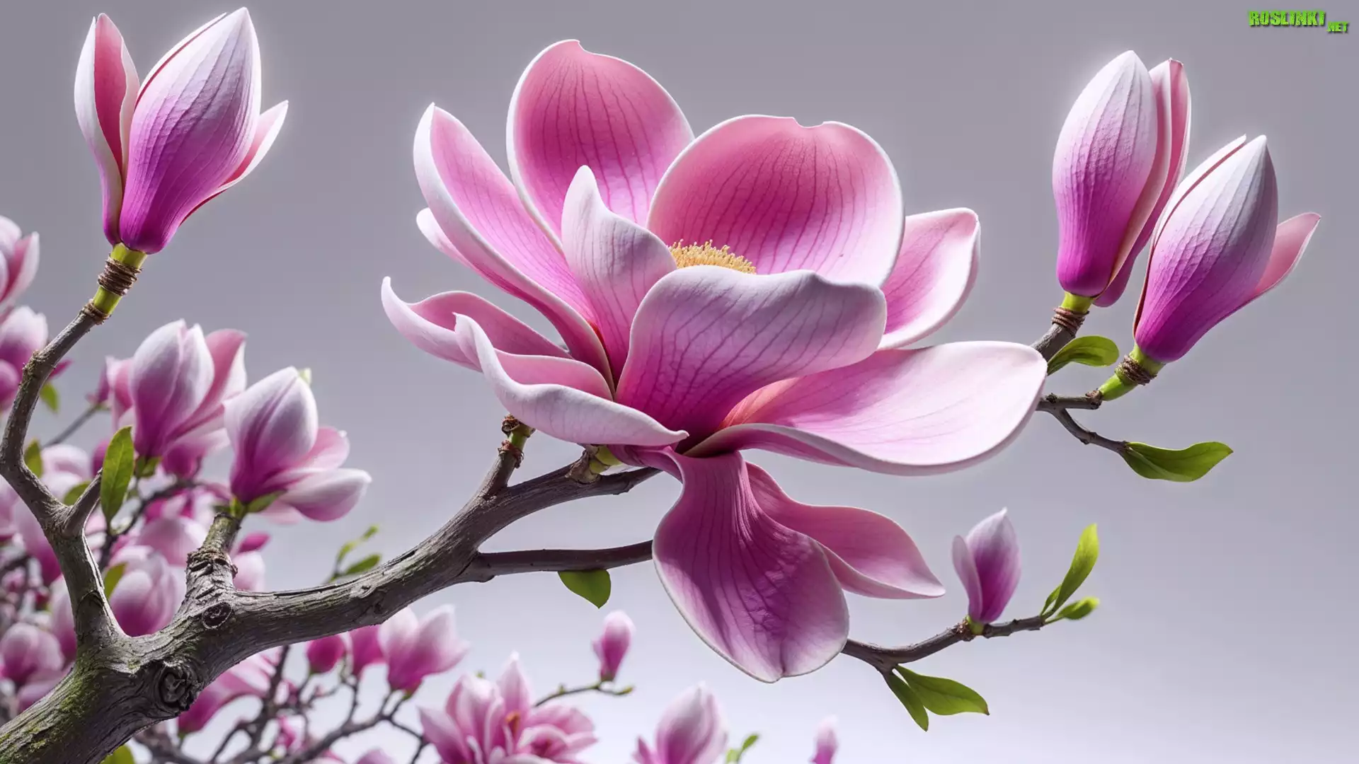 Rośliny: Magnolia, Kwiaty, Gałęzie, Grafika