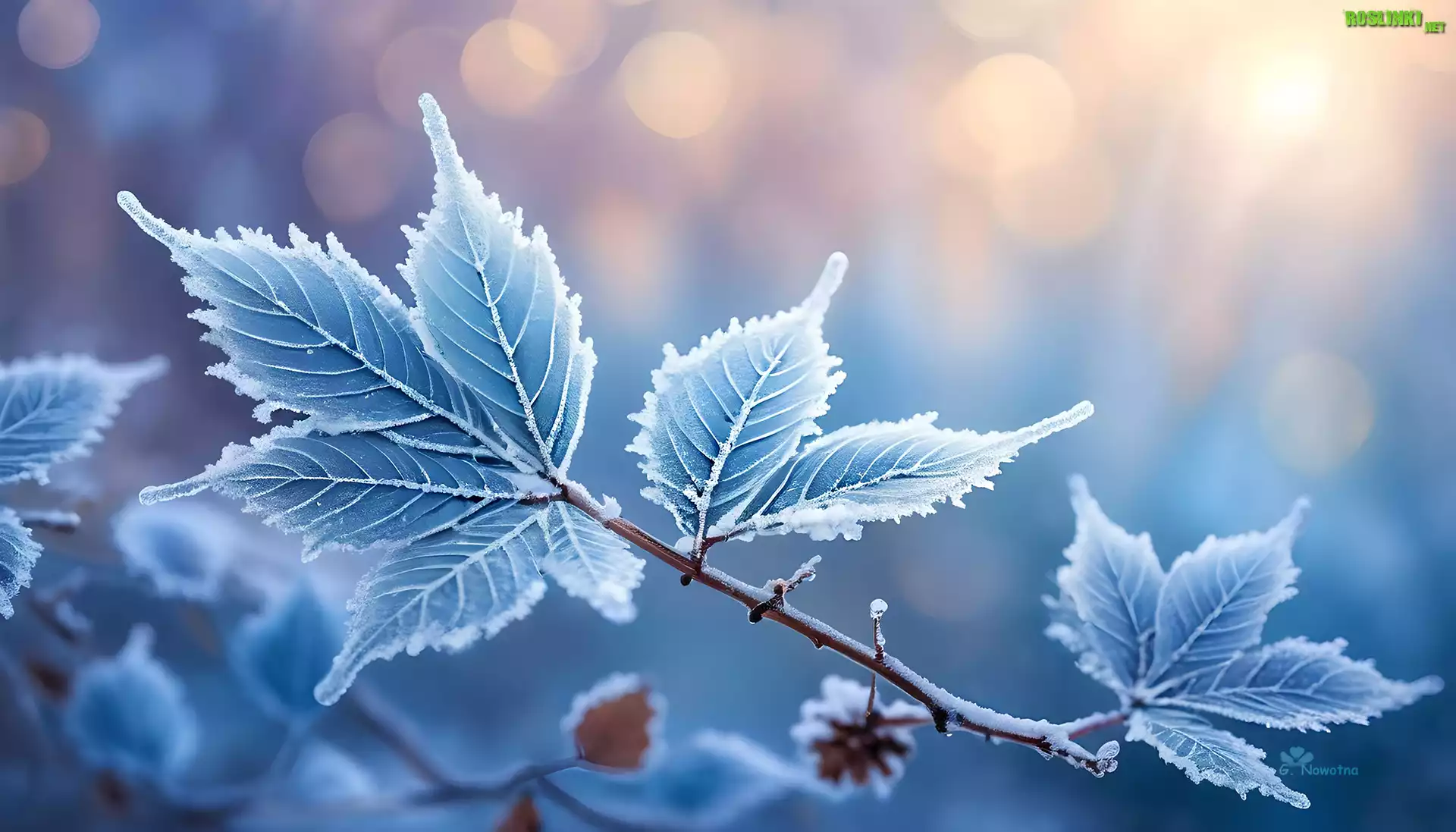 Niebieskie, Zmarznięte, Liście, Grafika