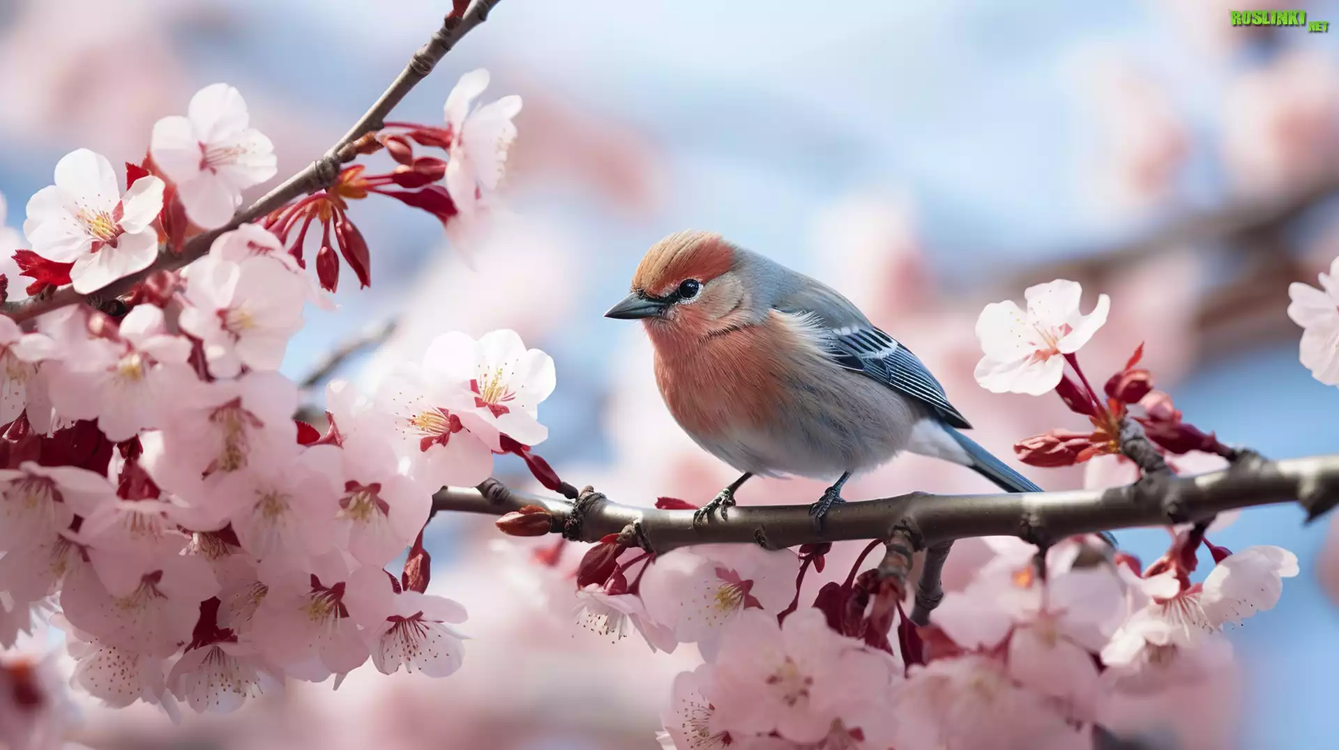 Rośliny: Ptak, Gałązka, Kwiaty, Grafika, Drzewo owocowe