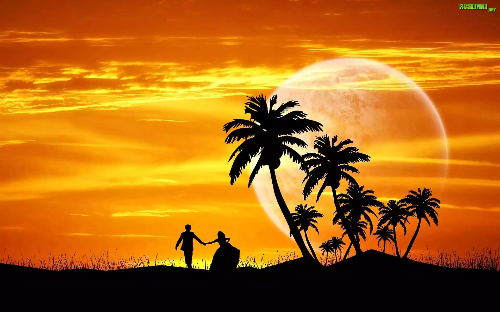 Rośliny: Grafika, Zakochani, Niebo, Zachód, Słońca, Palmy