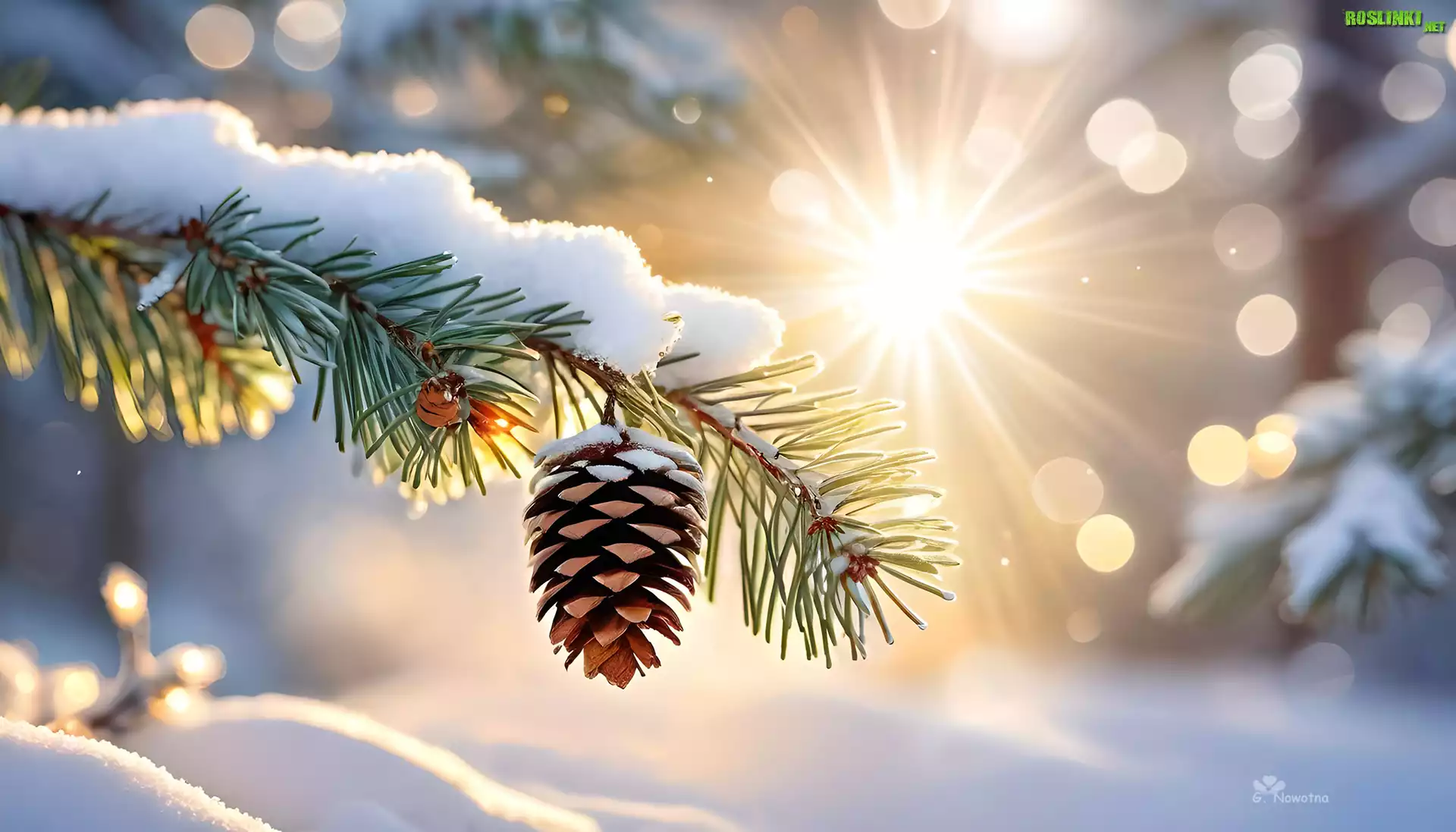 Rośliny: Świerk, Szyszka, Śnieg, Grafika