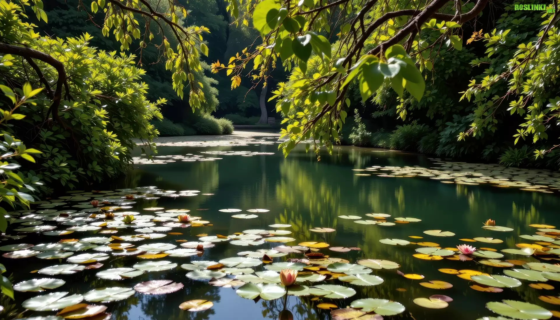 Rośliny: Staw, Lilie wodne, Zwisające, Gałęzie, Drzewa, Lato, Grafika