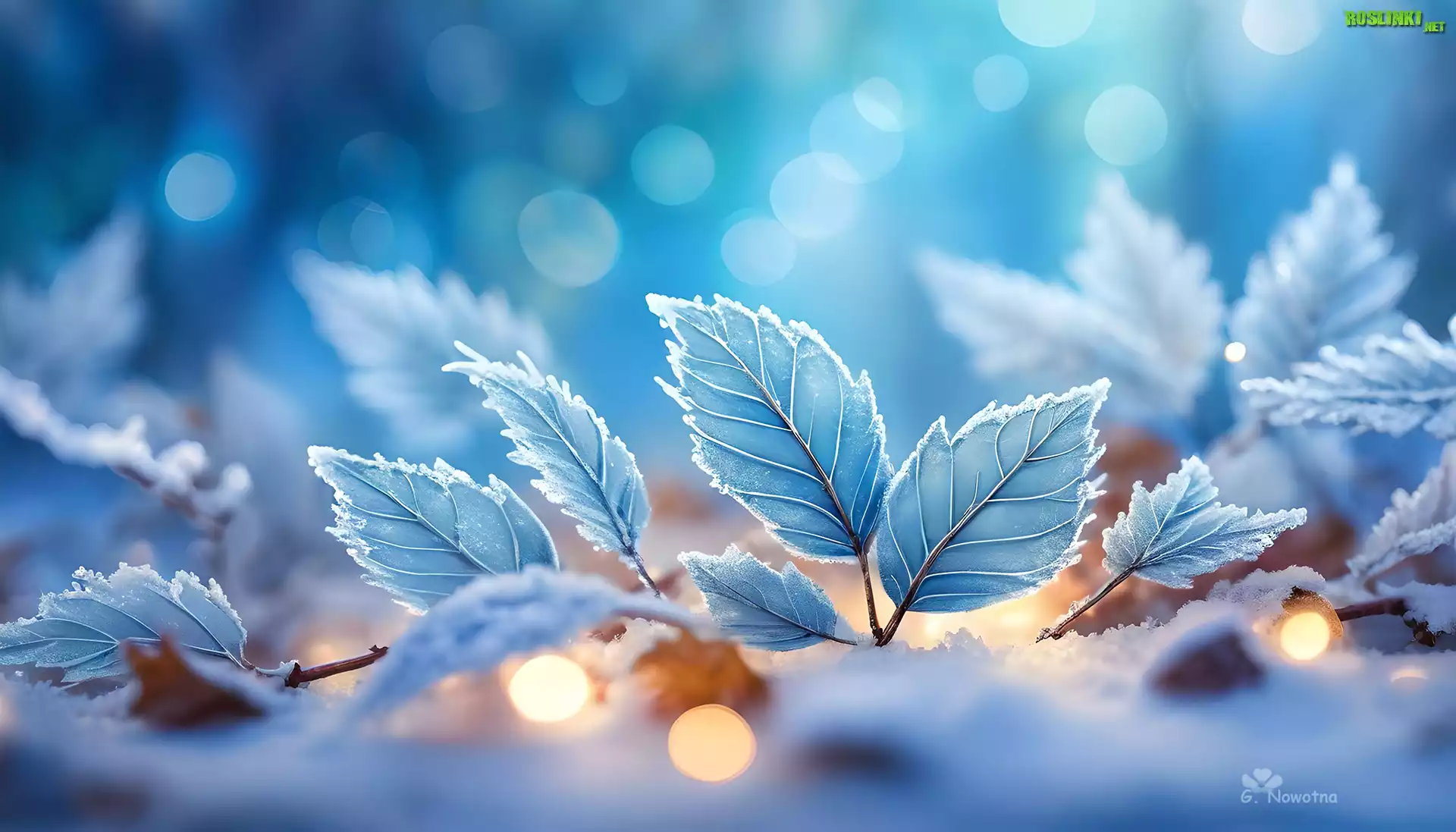 Rośliny: Zmarznięte, Oszronione, Liście, Grafika