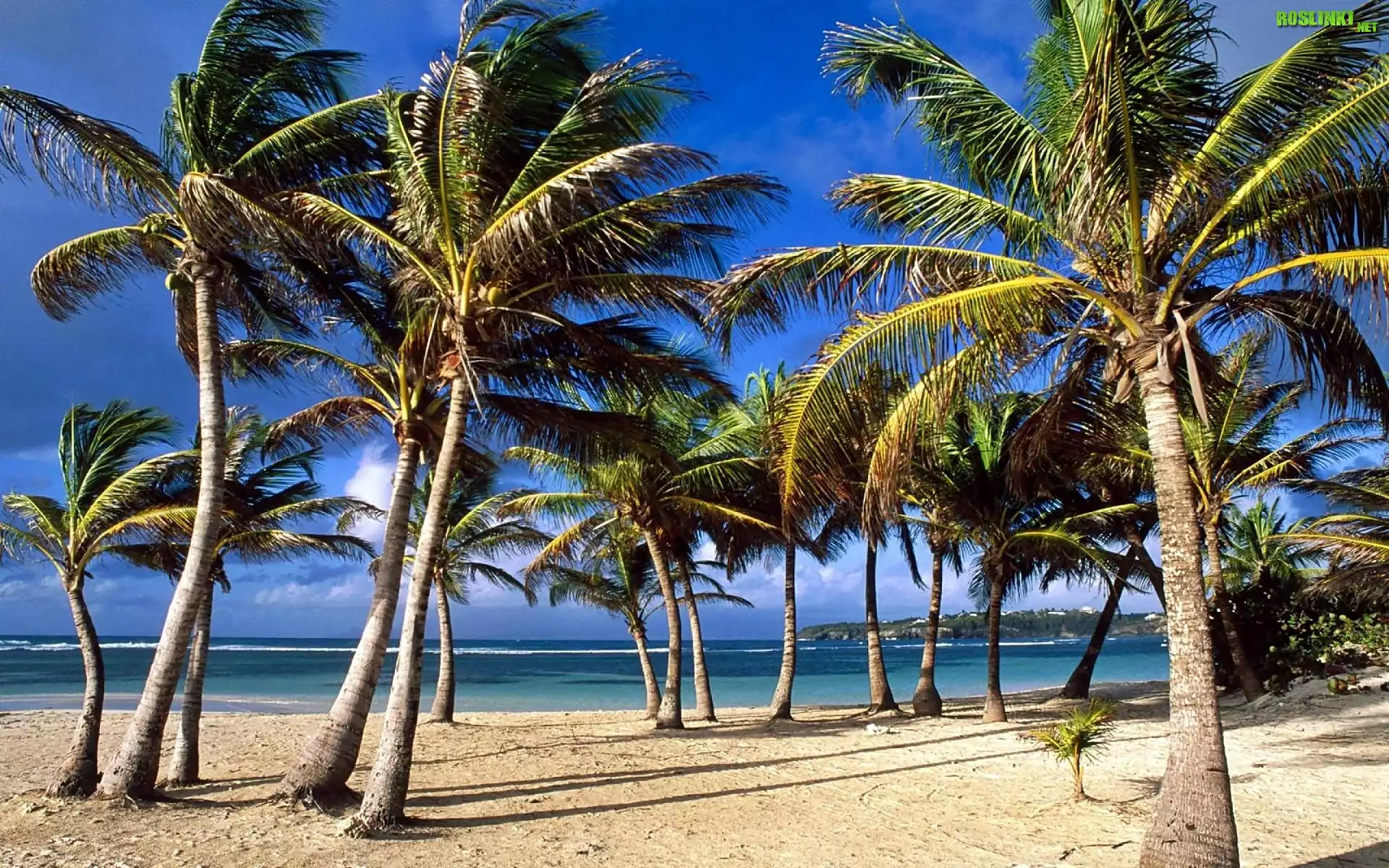 Rośliny: Gwadelupa, Wyspa, Morze, Plaża, Palmy