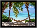 Trzy, Palmy, Morze, Hamak, Rośliny, Piasek