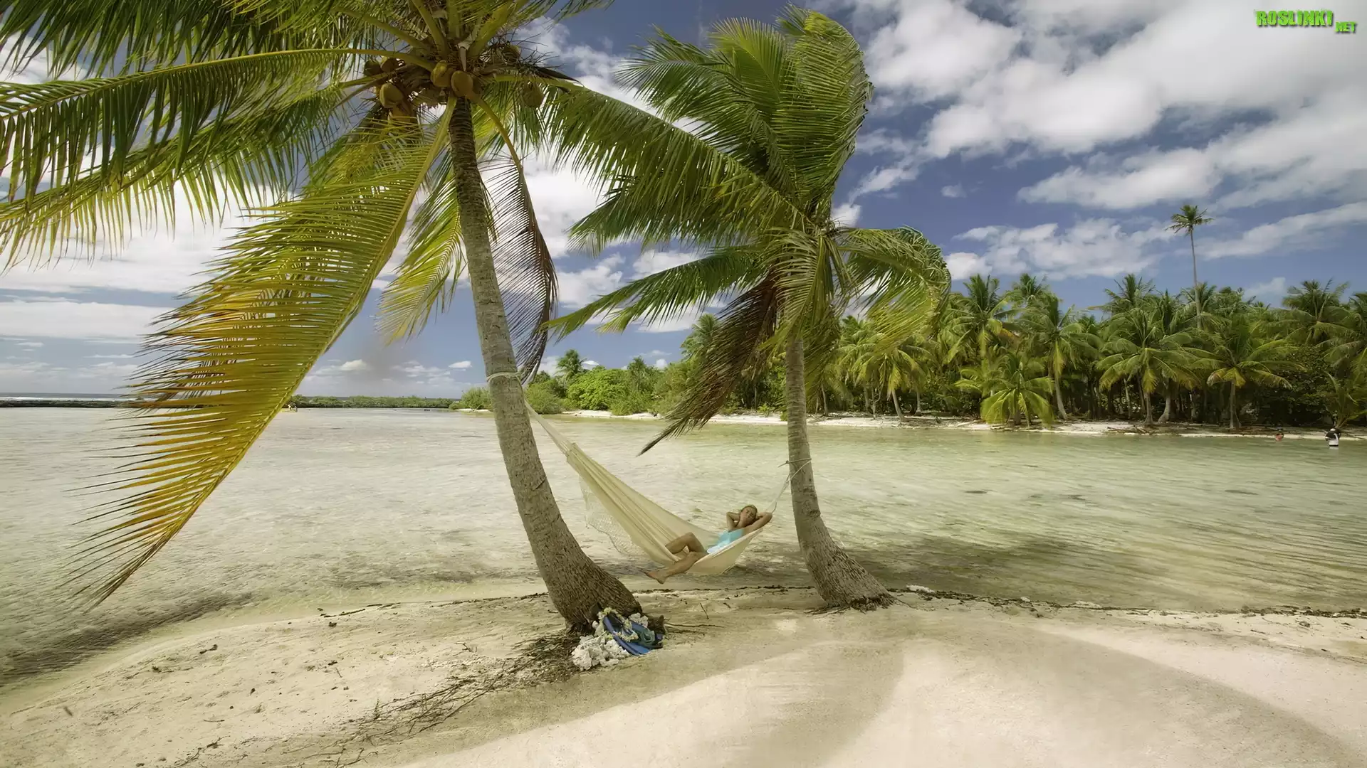 Rośliny: Hamak, Palmy, Plaża, Dziewczyna