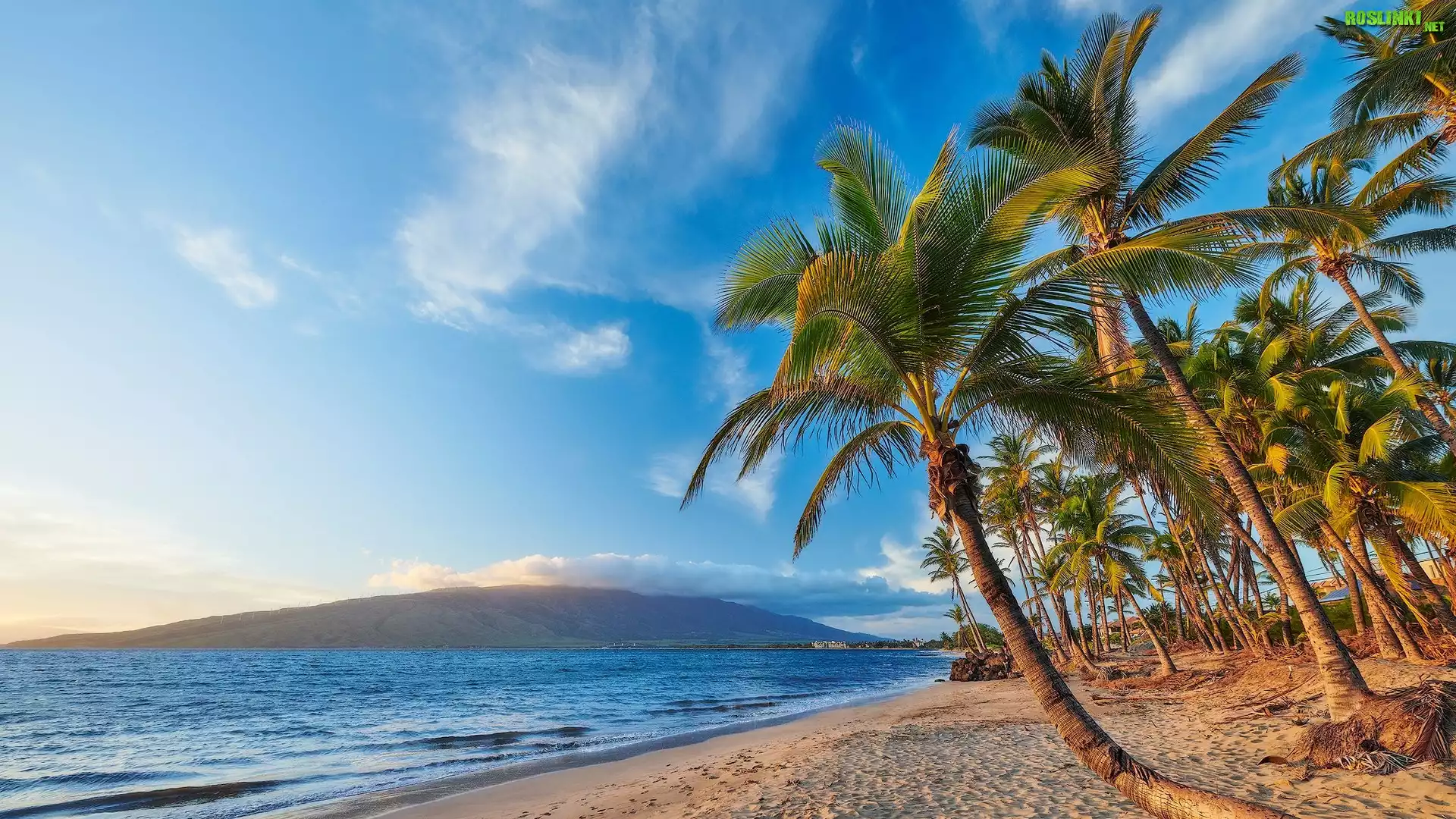 Rośliny: Hawaje, Wyspa Maui, Morze, Palmy, Wzgórza