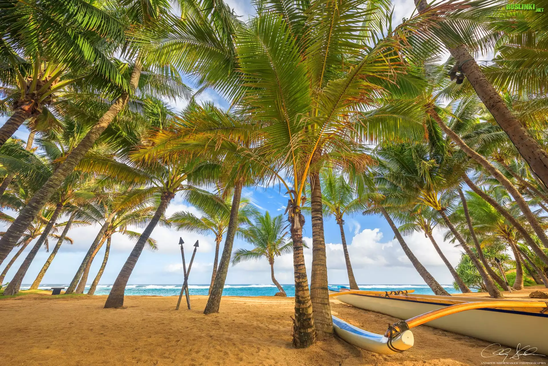 Rośliny: Hawaje, Palmy, Morze, Plaża, Łódka