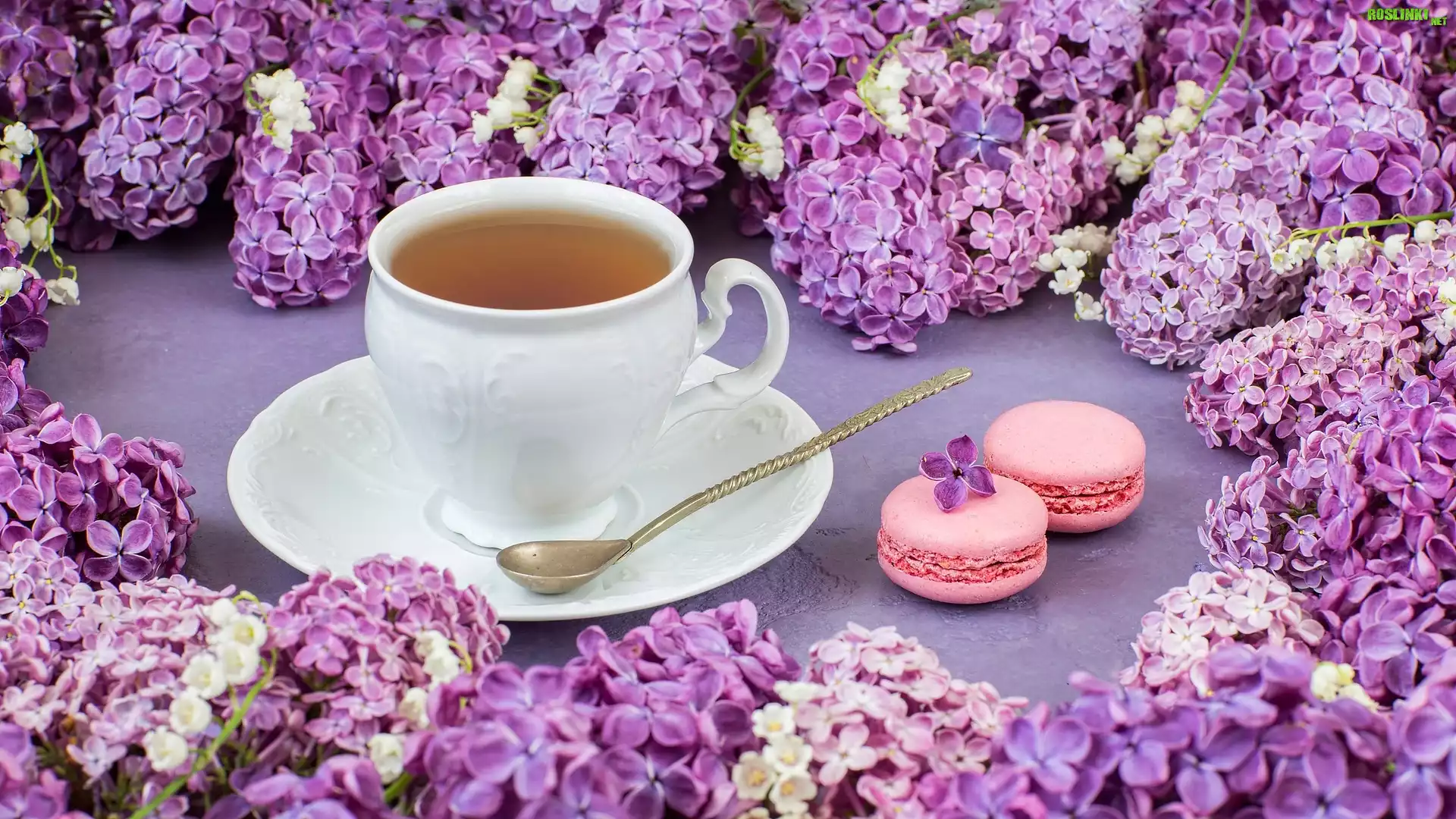 Rośliny: Filiżanka, Herbata, Spodek, Łyżeczka, Ciasteczka, Makaroniki, Bez, Gałązki