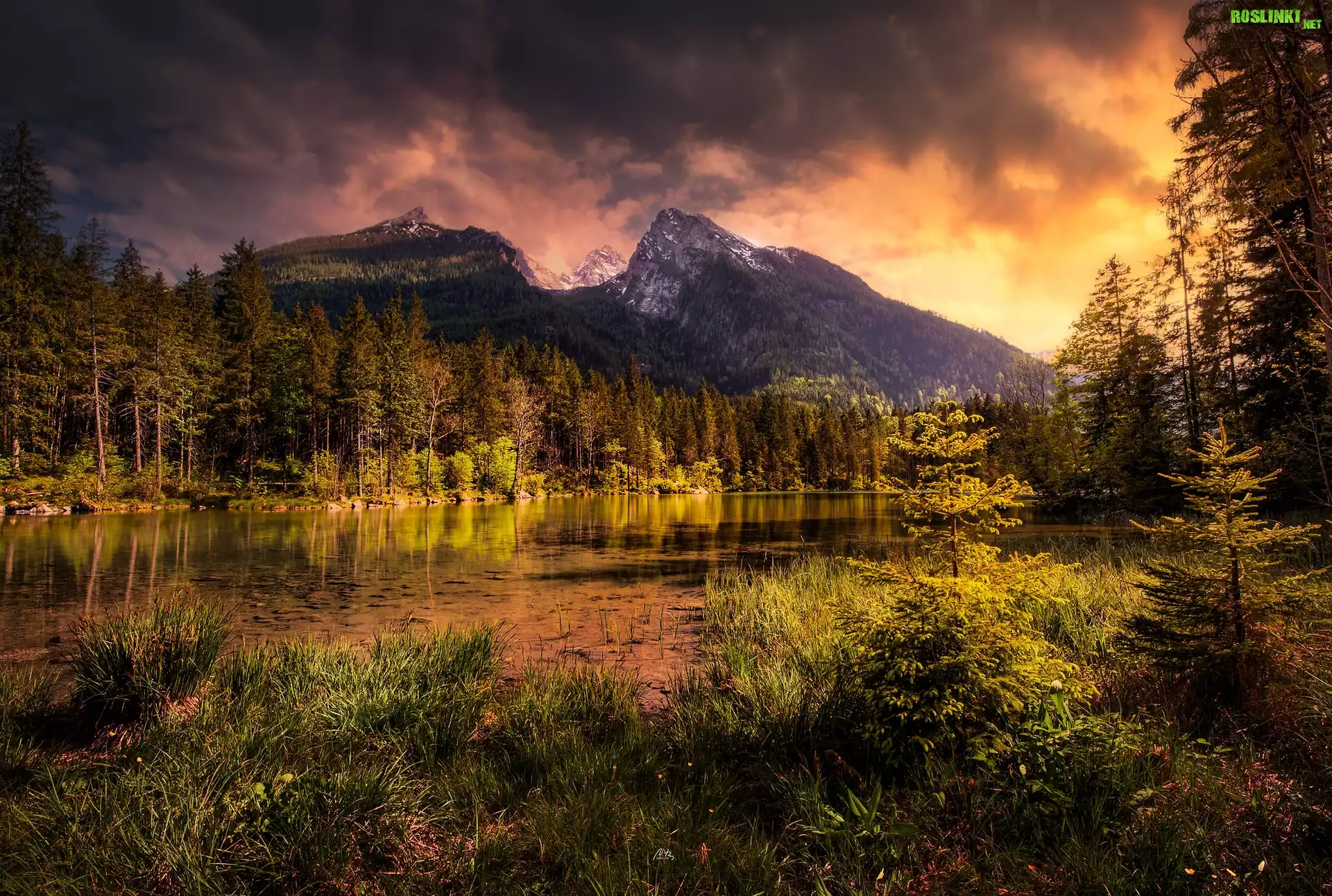 Rośliny: Jezioro Hintersee, Powiat Berchtesgadener, Bawaria, Niemcy, Góry, Drzewa