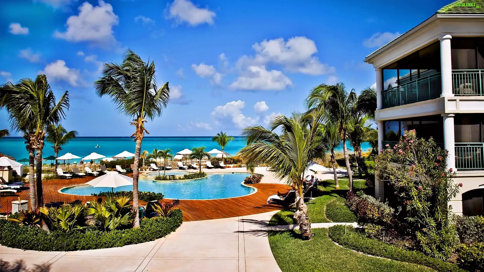 Rośliny: Hotel, Palmy, Basen, Morze, Tropiki