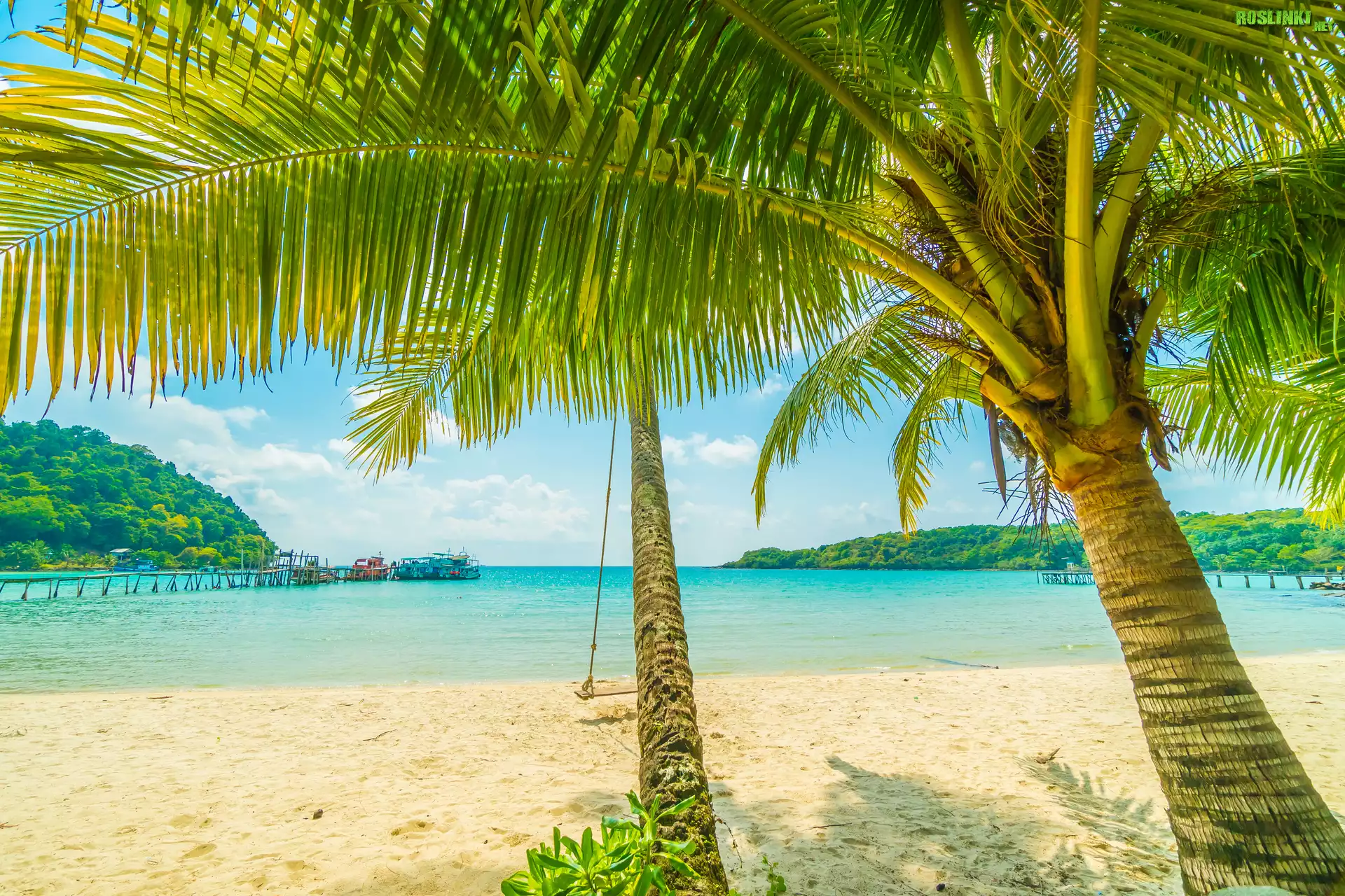 Rośliny: Palmy, Morze, Plaża, Huśtawka, Molo, Tropiki