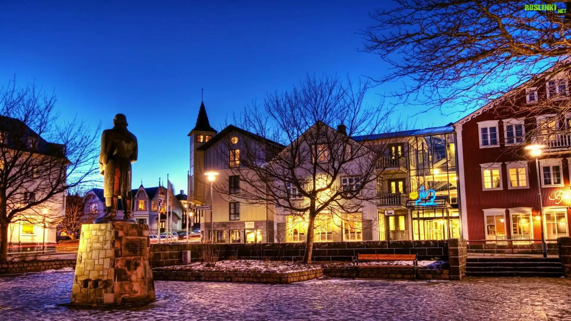Rośliny: Islandia, Reykjavik, Domy, Pomnik, Noc