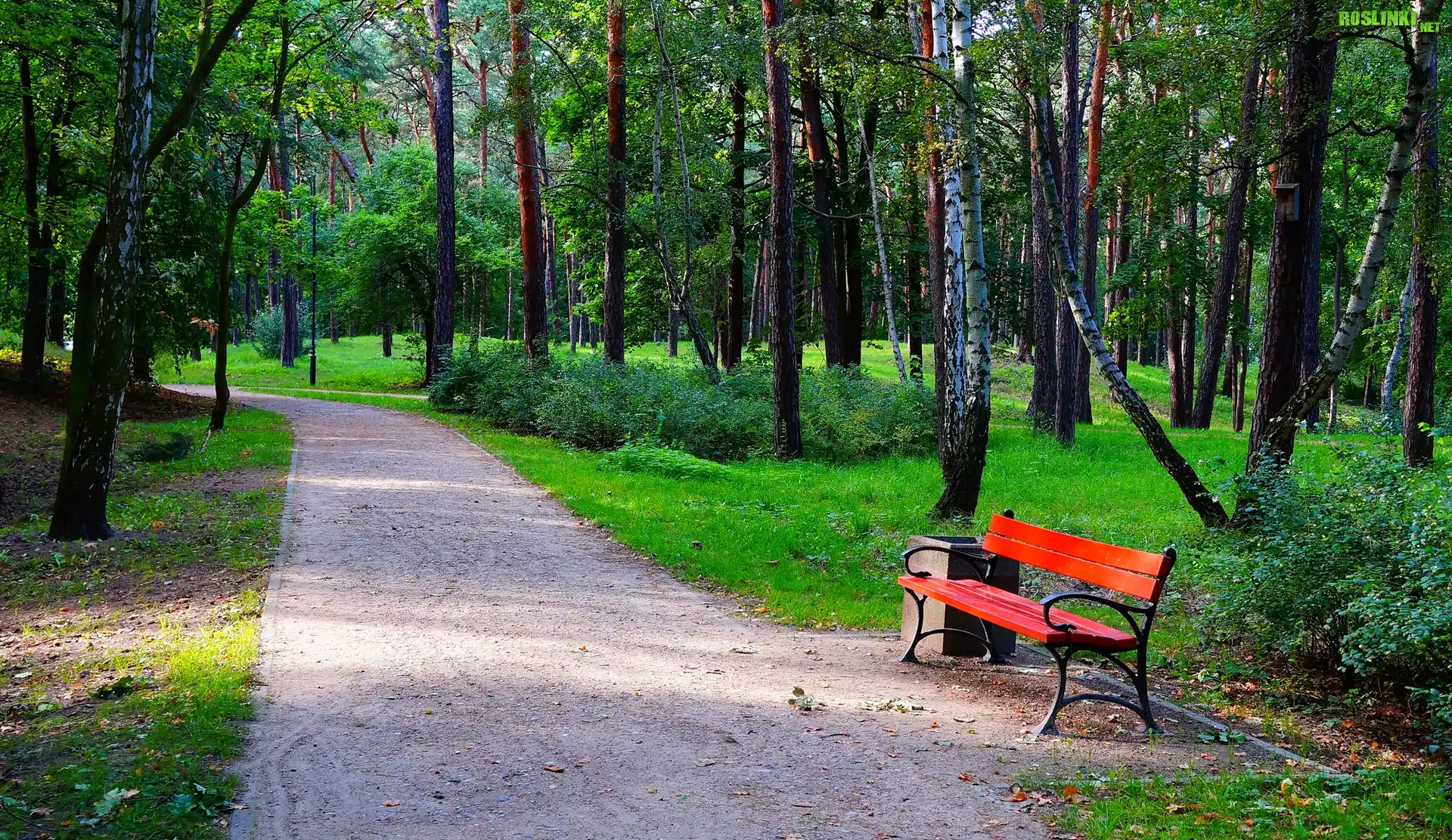 Rośliny: Polska, Gdańsk, Park Brzeźnieński im.J.J.Haffnera, Alejka, Ławka, Drzewa, Zieleń