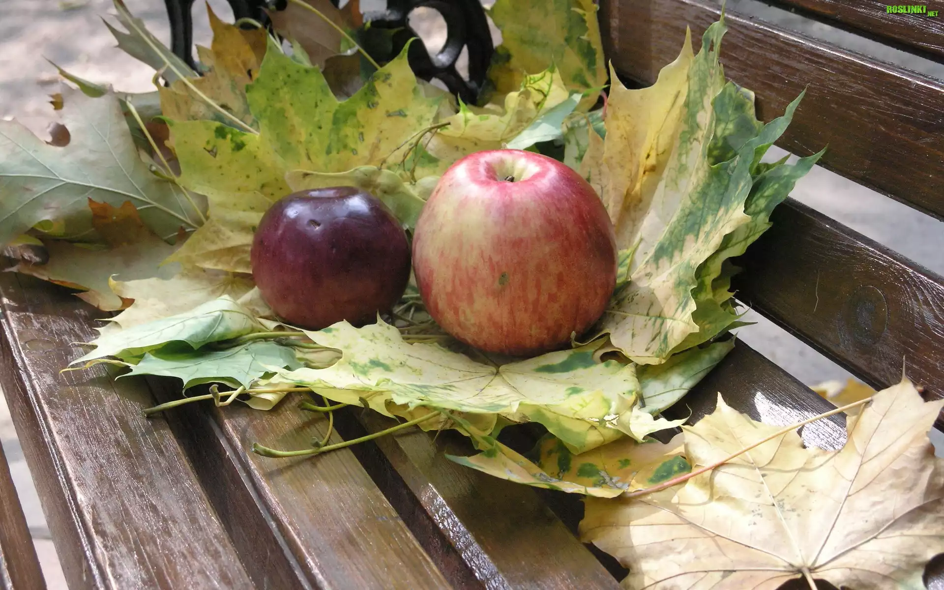 Rośliny: Ławka, Dwa, Jabłka, Liście