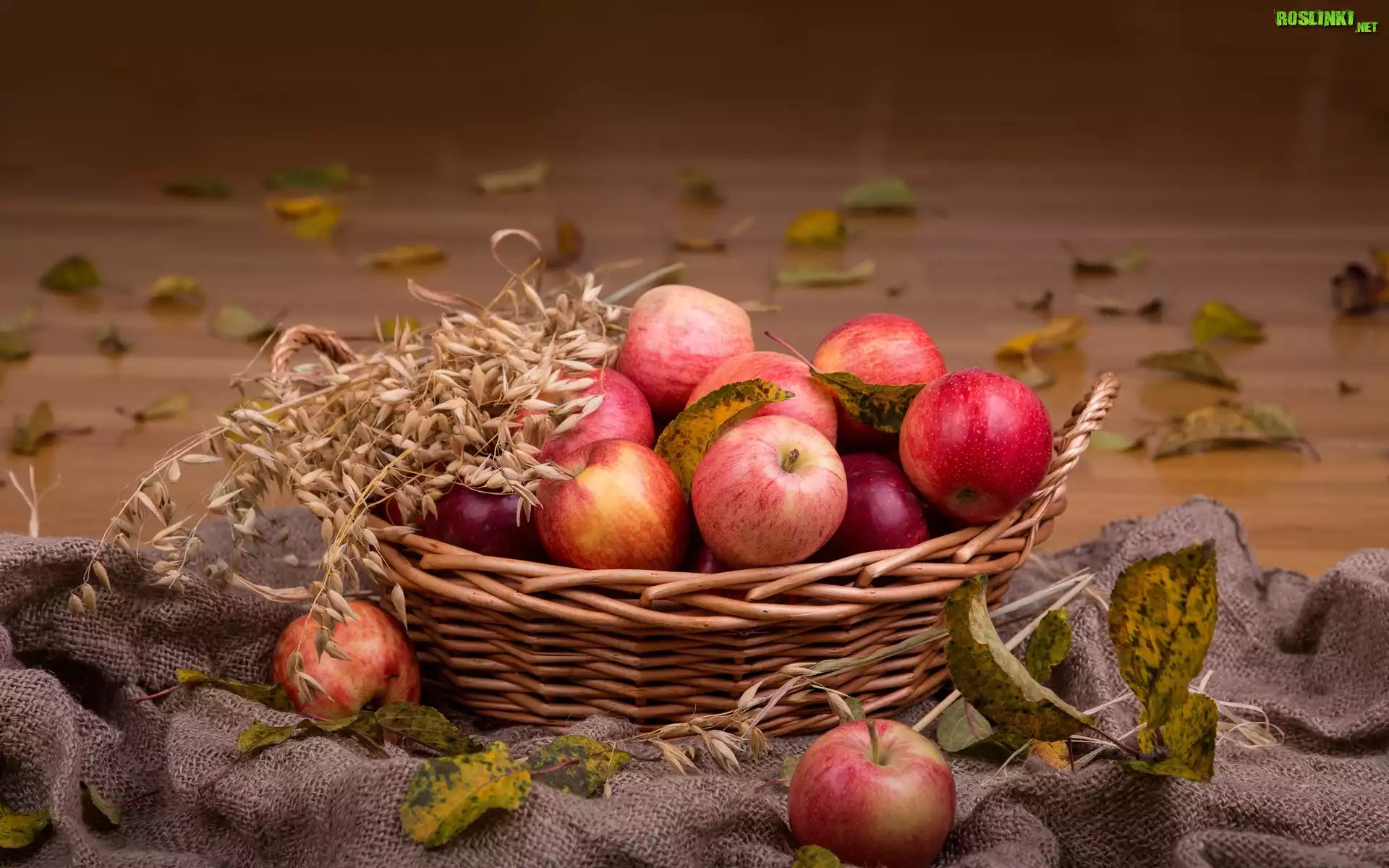 Rośliny: Jabłka, Kosz, Liście, Kompozycja