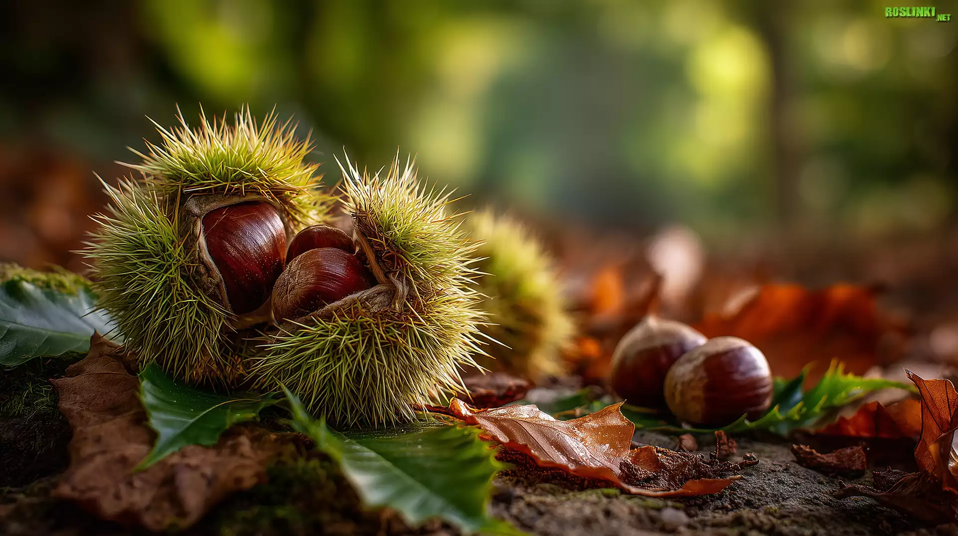 Rośliny: Kasztany jadalne, Łupina, Grafika AI