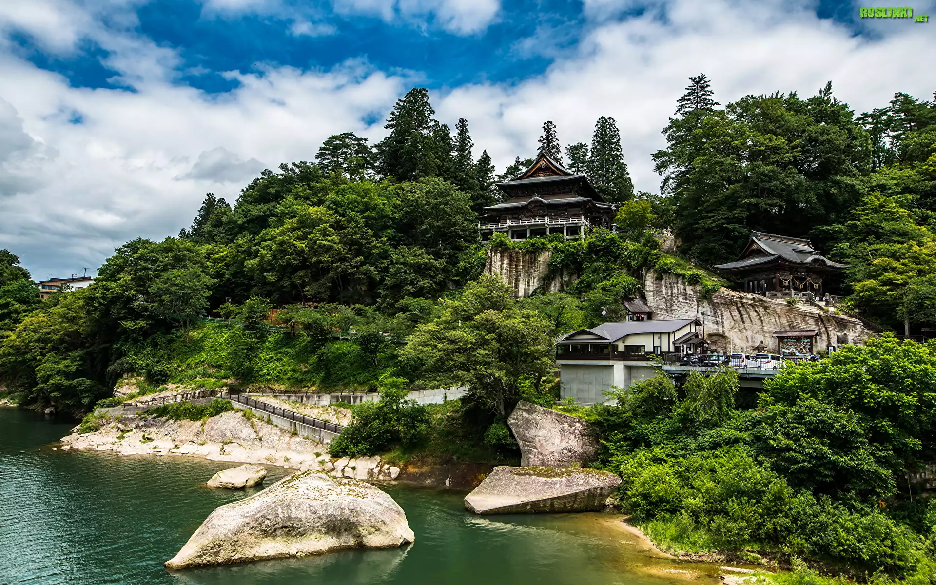 Rośliny: Japonia, Świątynia, Tohoku, Drzewa, Kamienie, Chmury