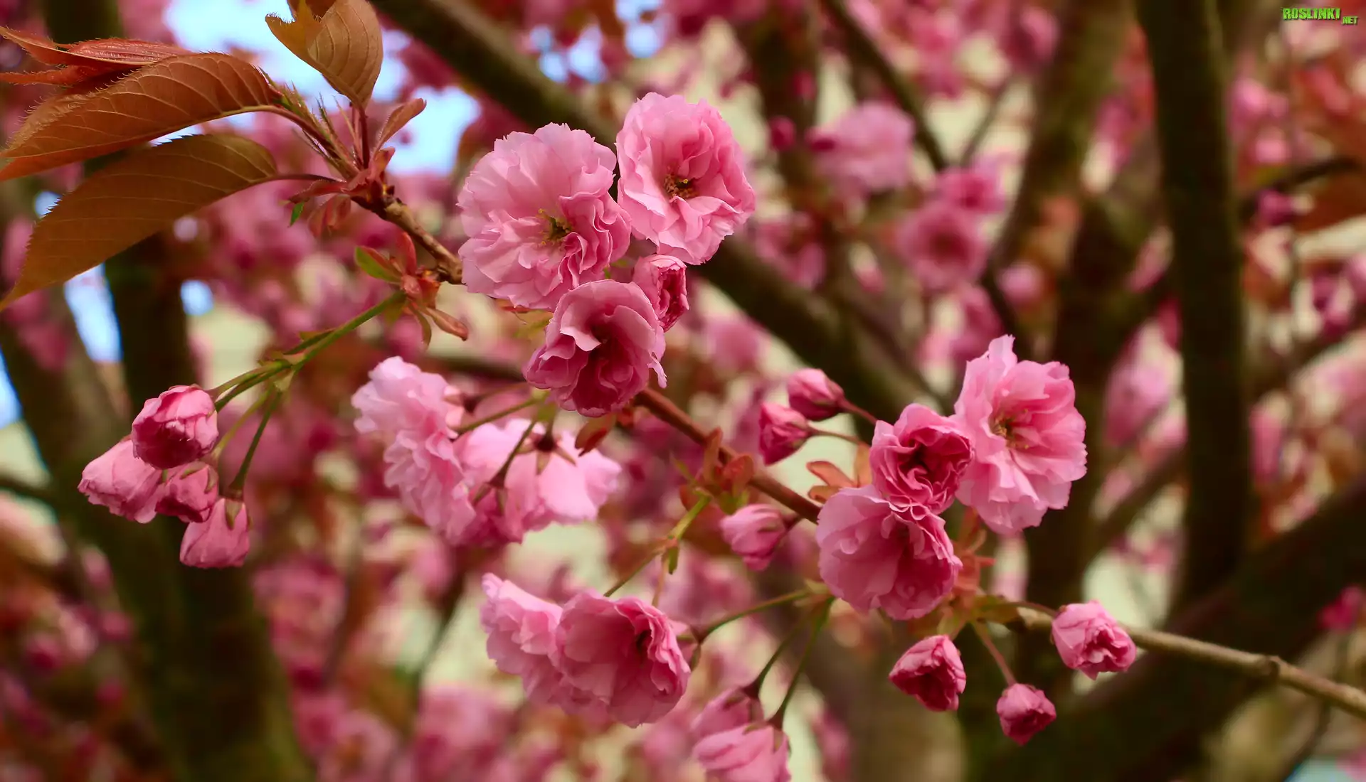 Różowe, Kwiaty, Wiśnia japońska, Drzewo owocowe, Gałązki