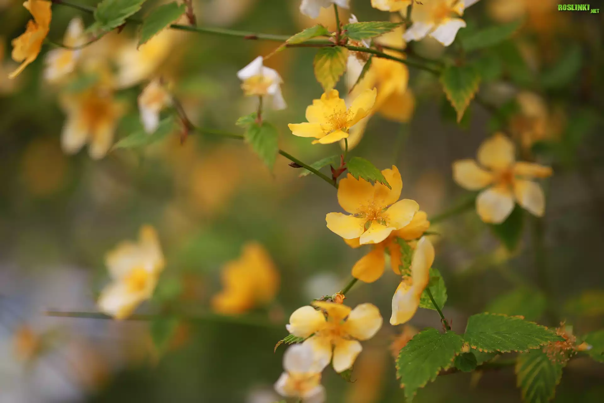 Rośliny: Złotlin japoński, Żółte, Kwiaty, Krzew