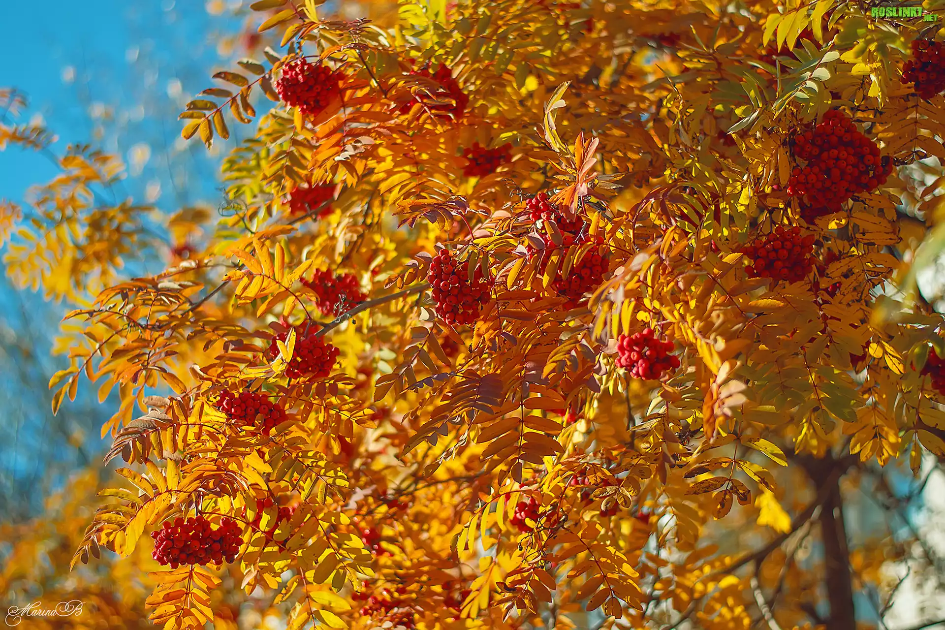 Rośliny: Jarzębina, Żółte, Listki, Czerwone, Owoce