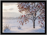 Zima, Jarzębina, Ptaki, Gile, Pole