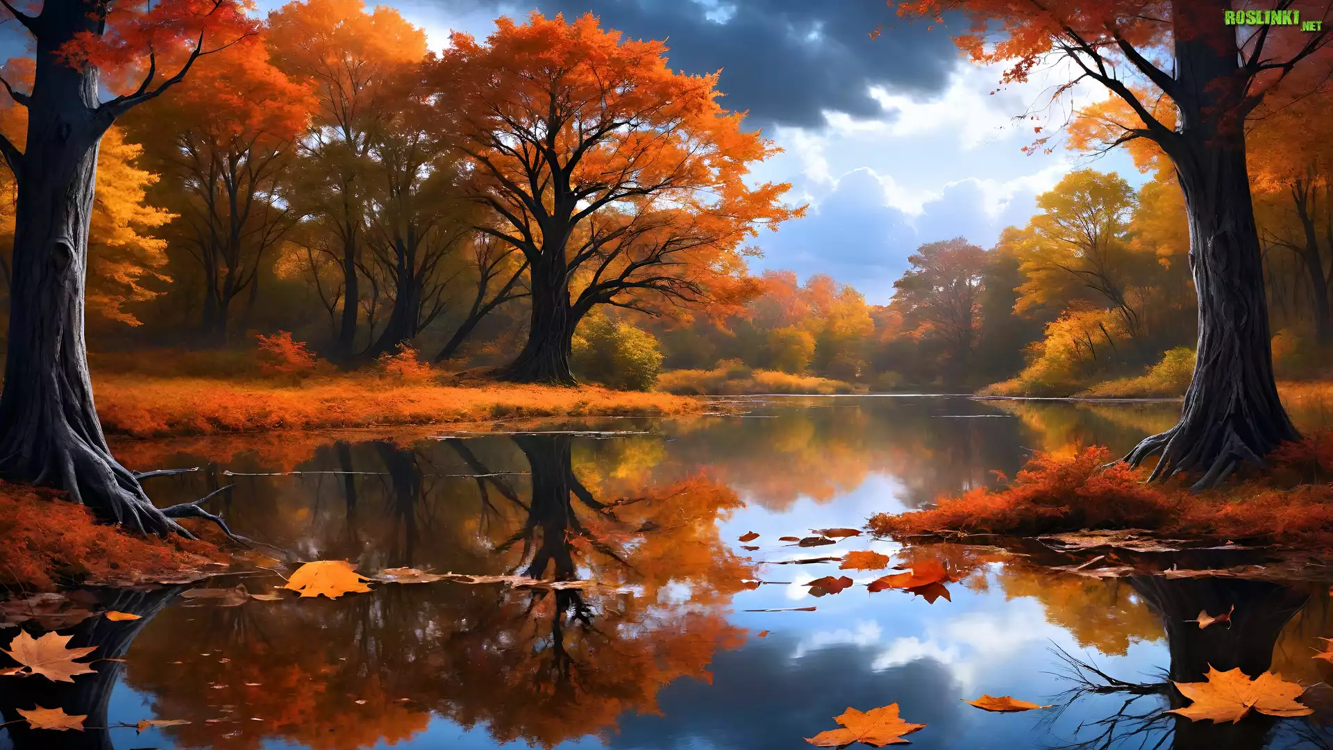 Rośliny: Staw, Las, Drzewa, Jesień, Grafika AI