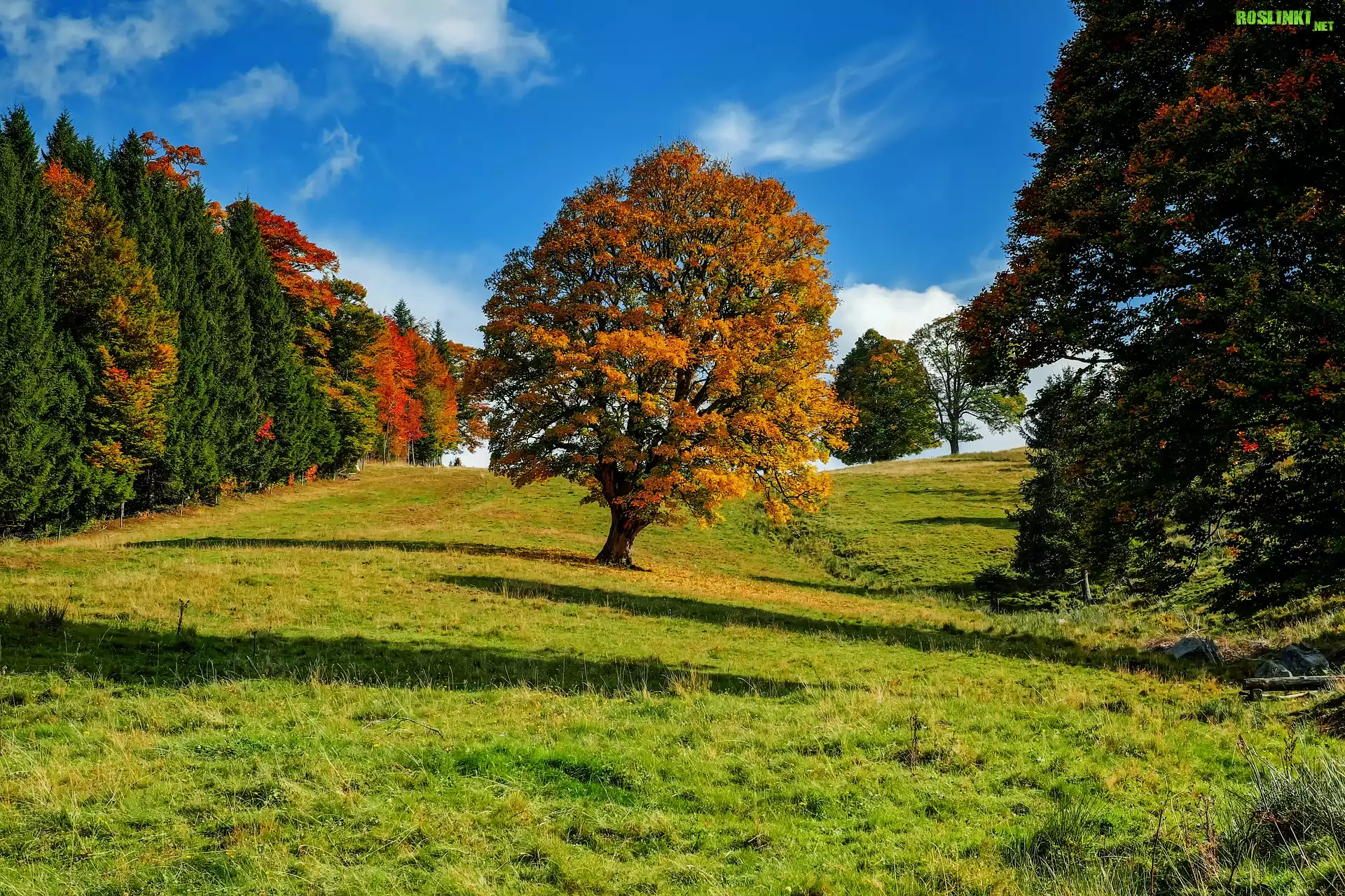 Rośliny: Jesień, Drzewa, Łąka, Niebo