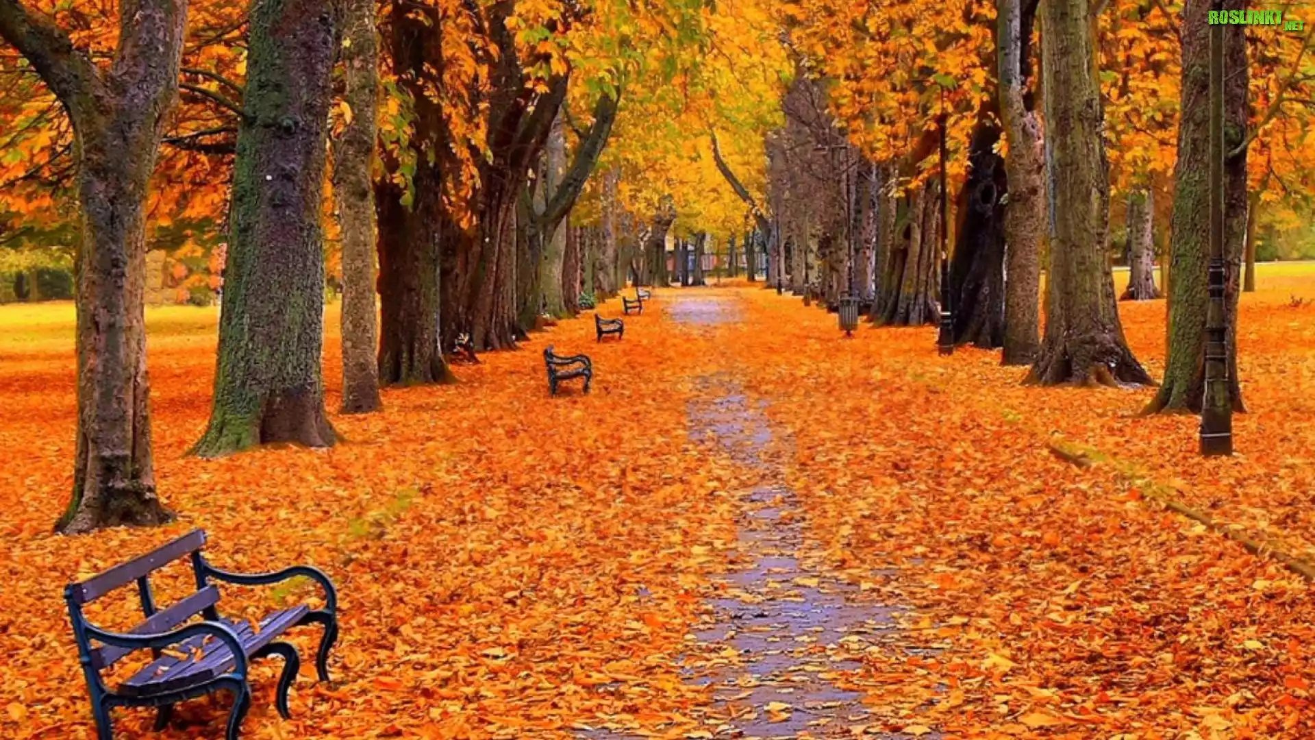 Rośliny: Jesień, Park, Aleja, Ławki