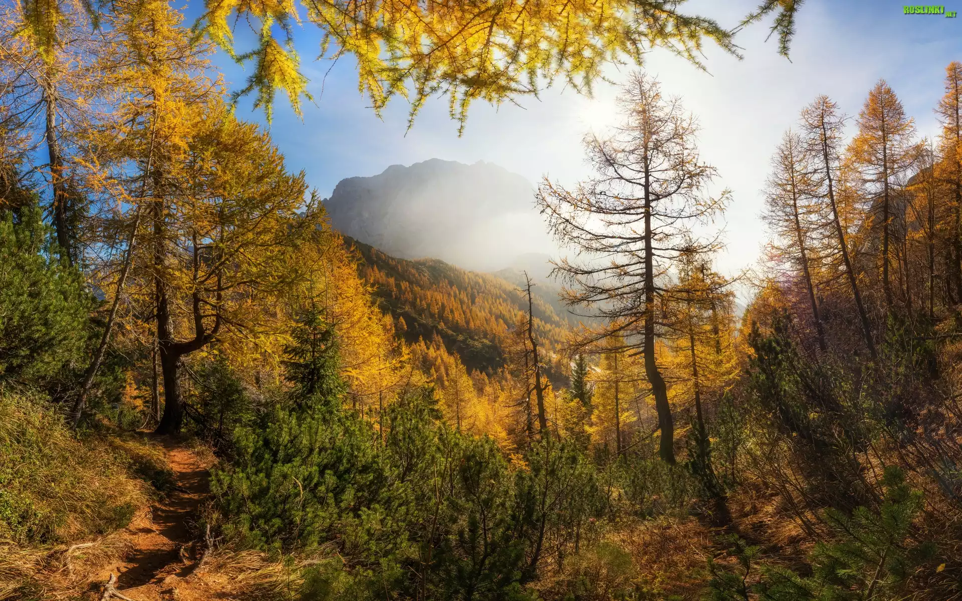 Rośliny: Jesień, Góry, Las, Mgła, Ścieżka, Drzewa