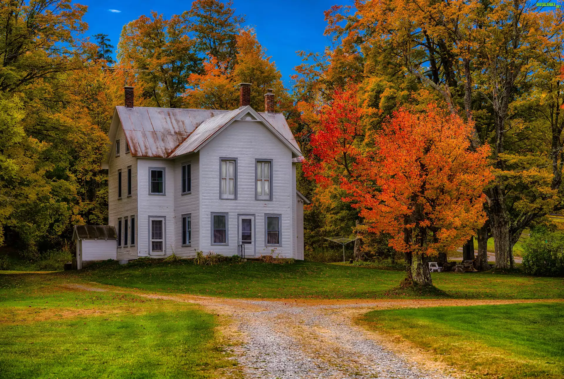 Rośliny: Jesień, Drzewa, Dom, Droga