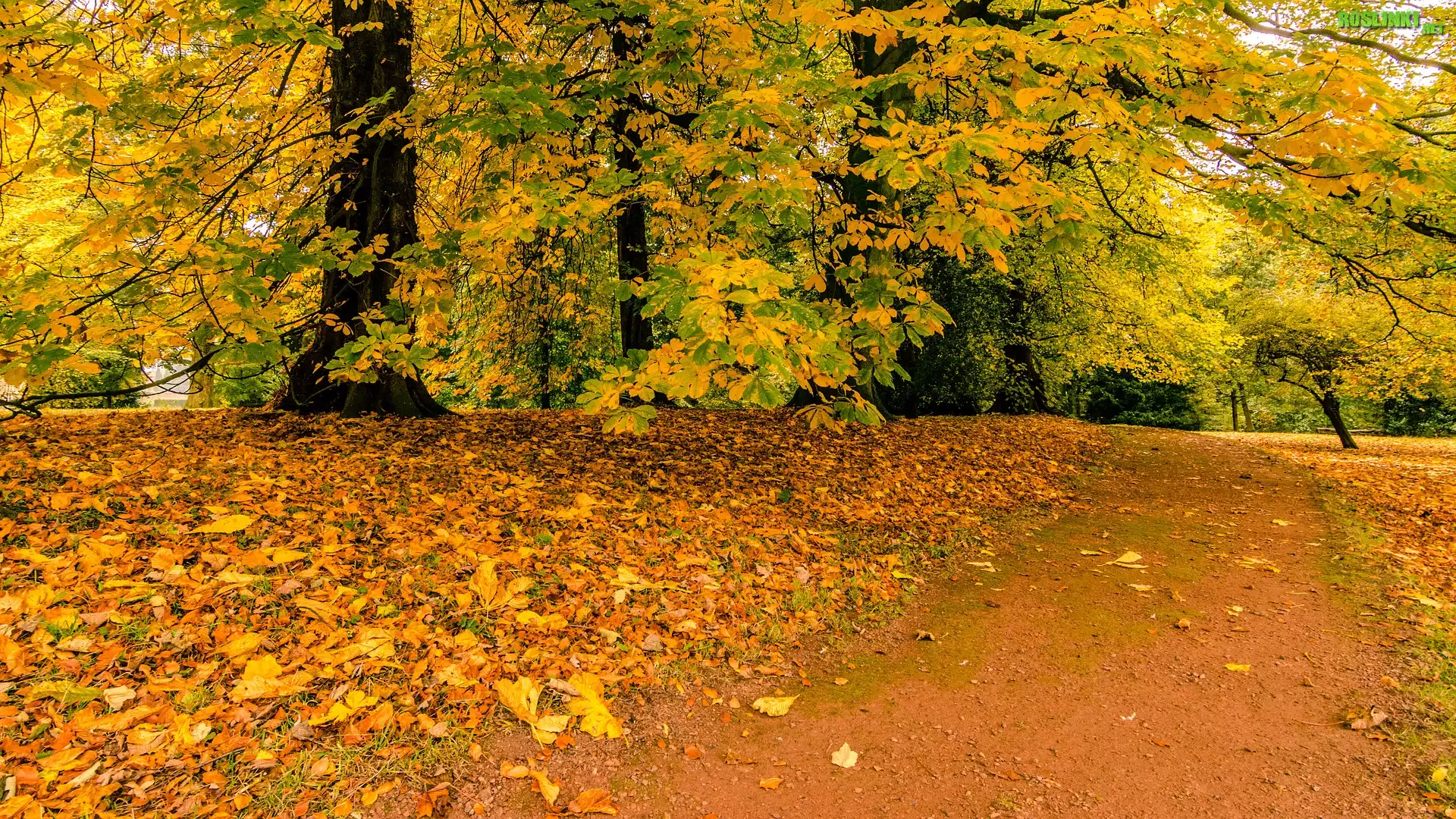 Rośliny: Jesień, Park, Drzewa, Droga, Liście