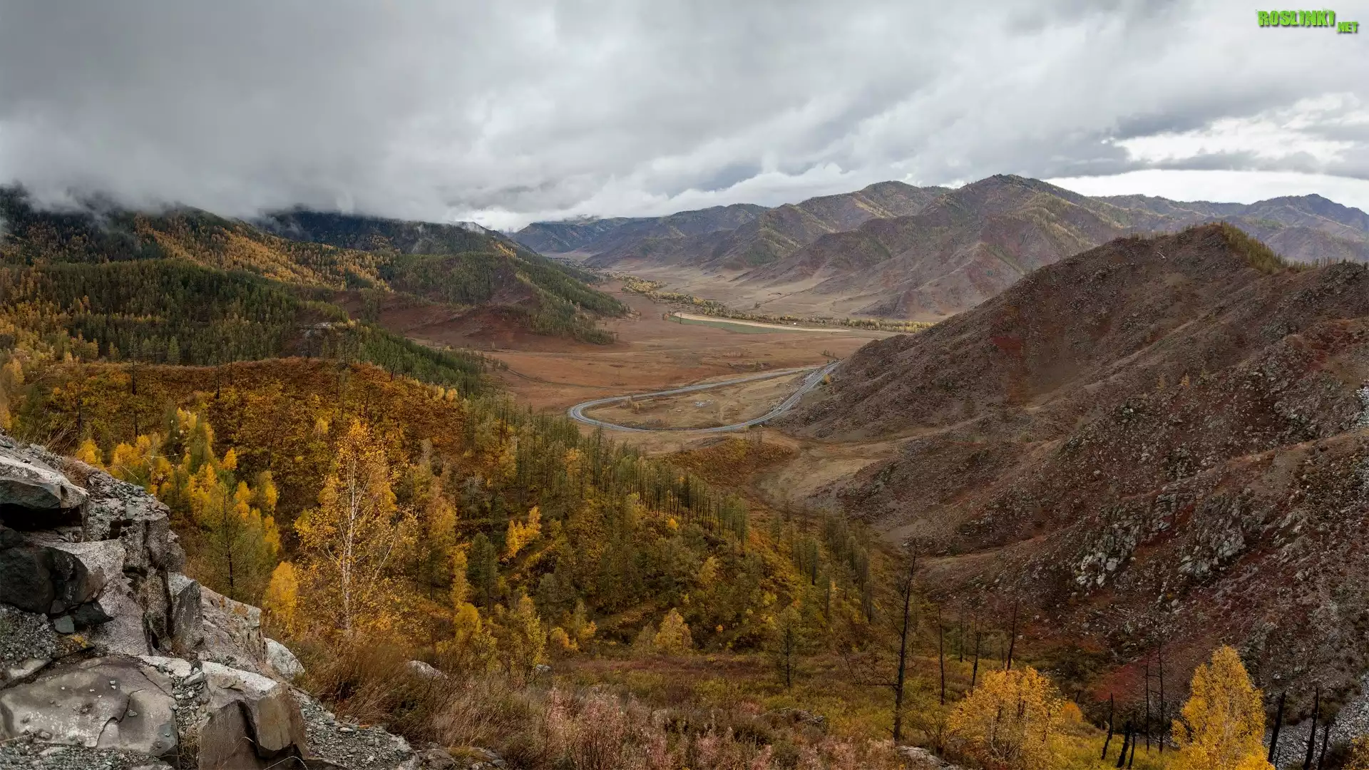 Rośliny: Jesień, Wzgórza, Góry, Droga, Drzewa
