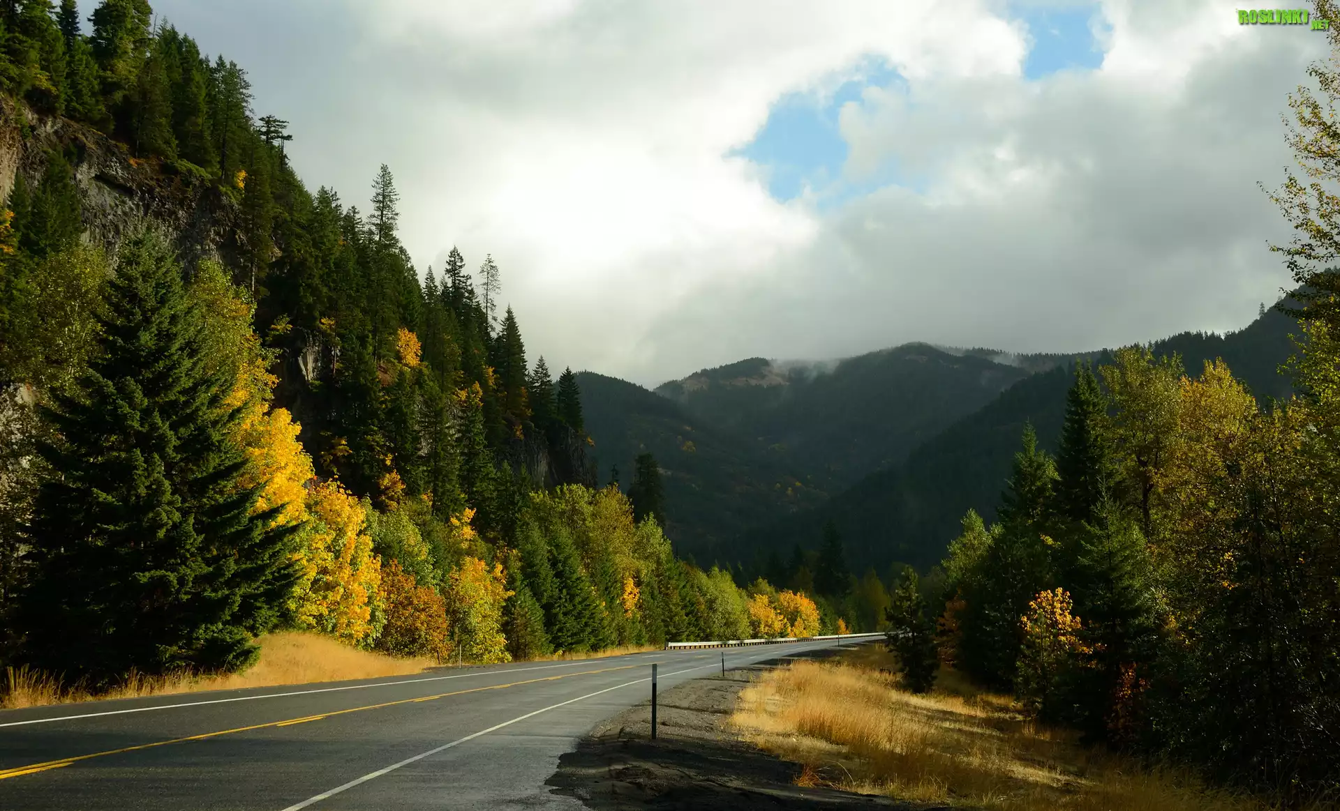 Rośliny: Stany Zjednoczone, Stan Oregon, Droga, Las, Drzewa, Góry Kaskadowe, Jesień