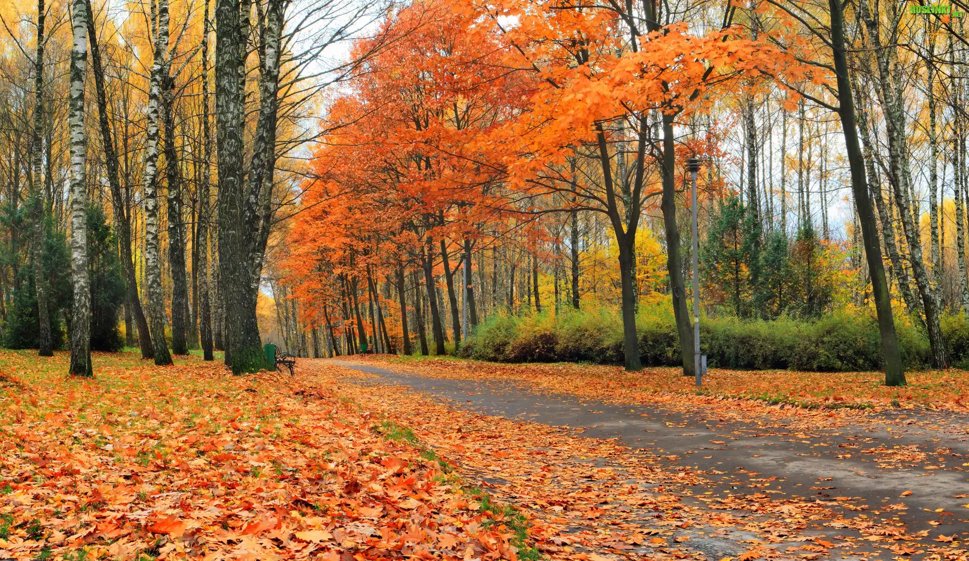 Rośliny: Jesień, Park, Aleja, Drzewa, Liście