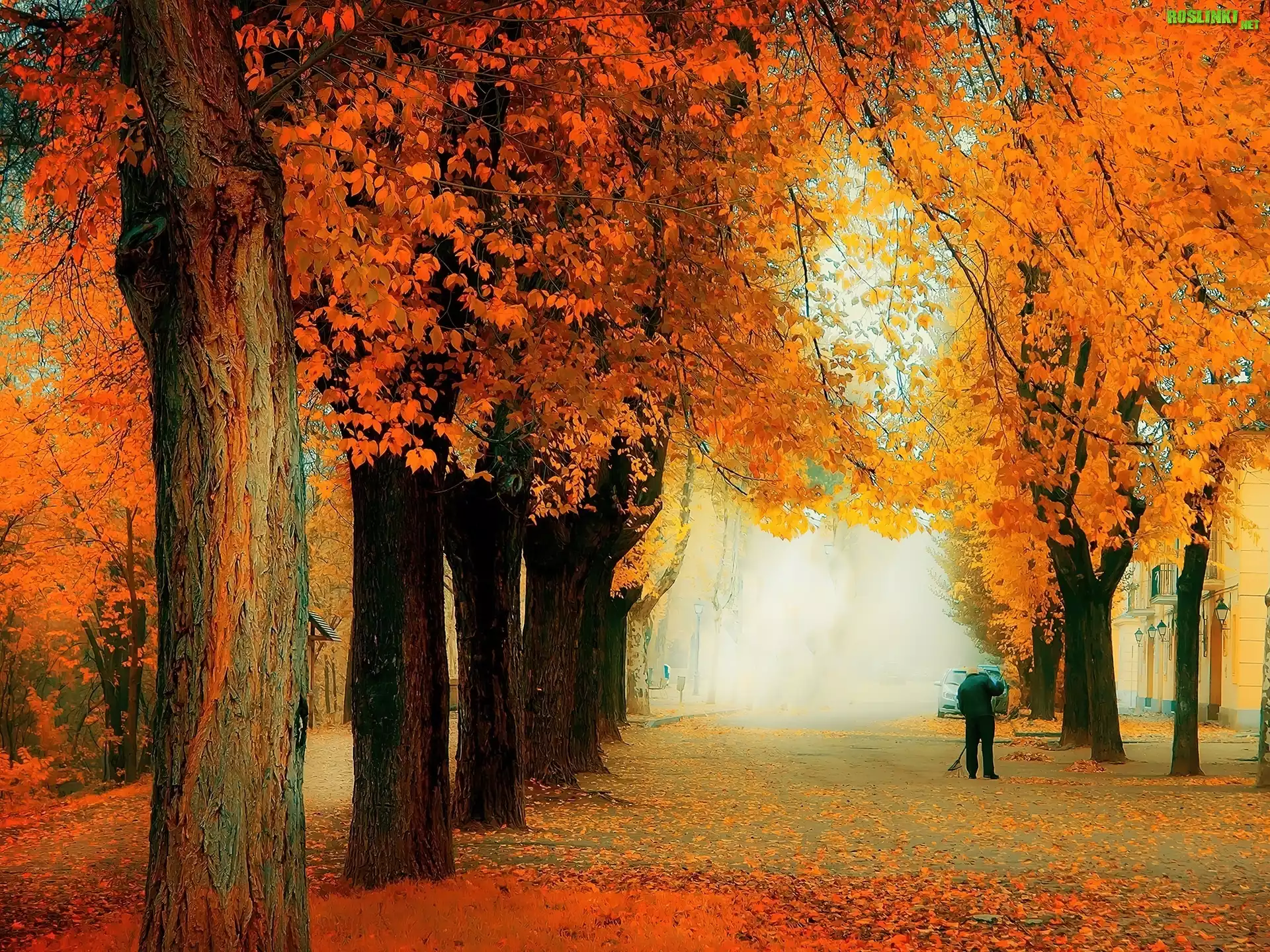 Rośliny: Jesień, Ulica, Alejka, Drzewa, Dozorca