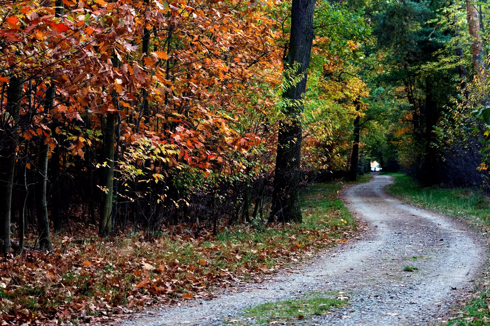 Rośliny: Jesień, Droga, Drzewa, Liście