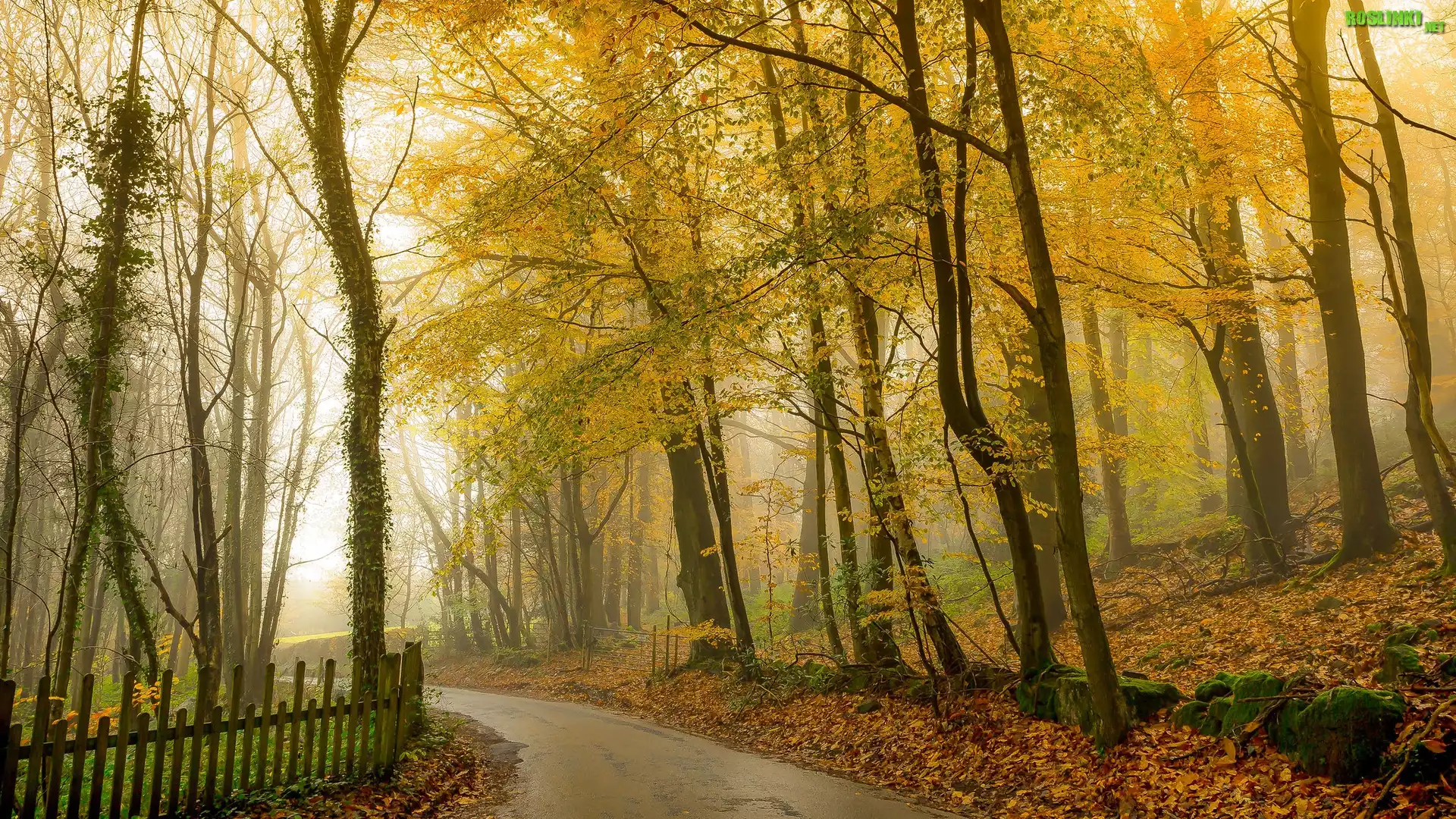 Rośliny: Jesień, Droga, Drzewa, Płot