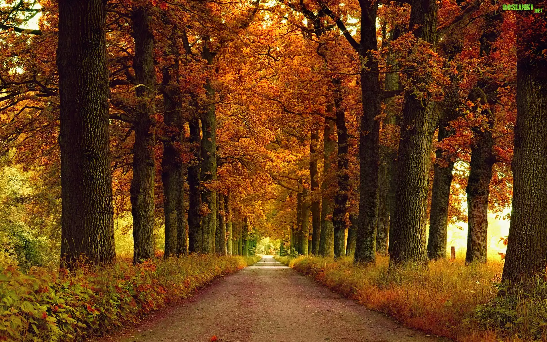 Rośliny: Jesień, Droga, Drzewa, Trawy