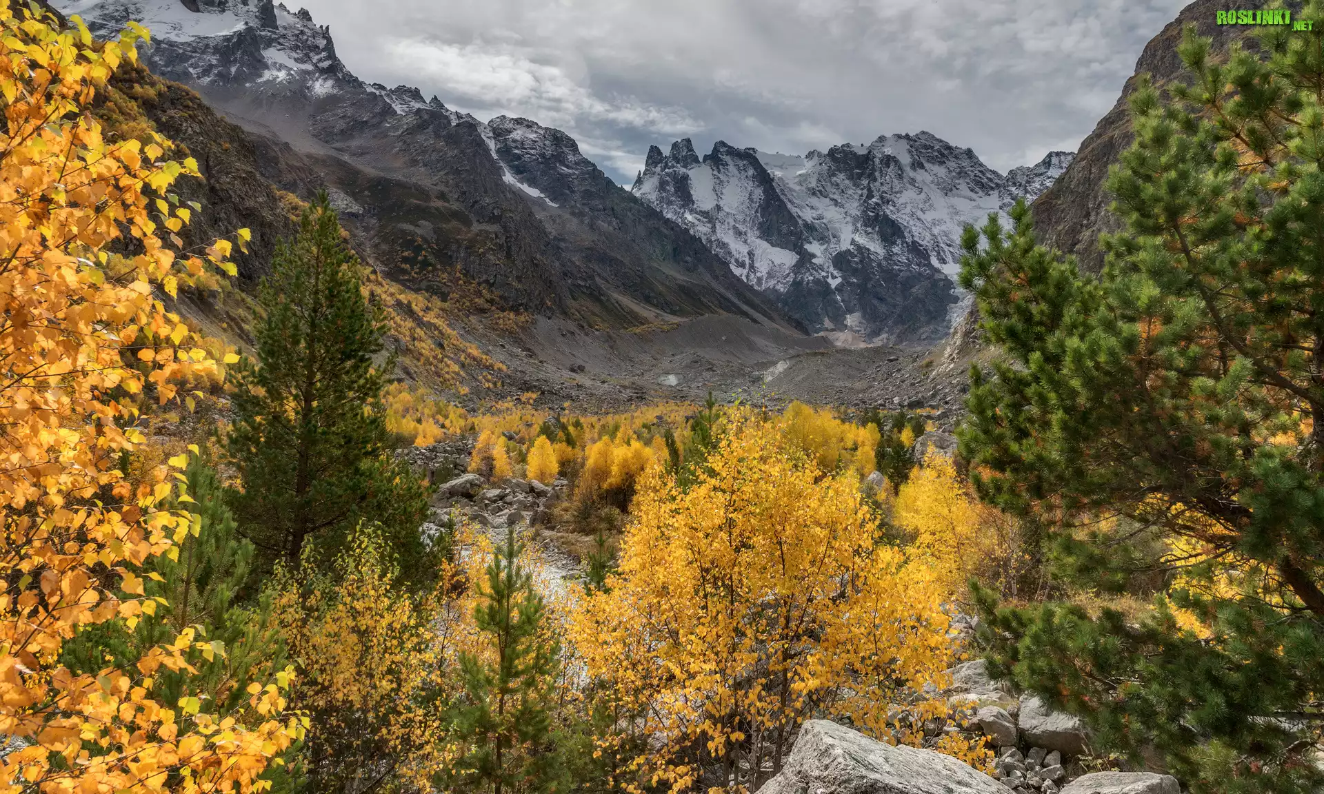 Rośliny: Jesień, Góry, Drzewa, Kamienie