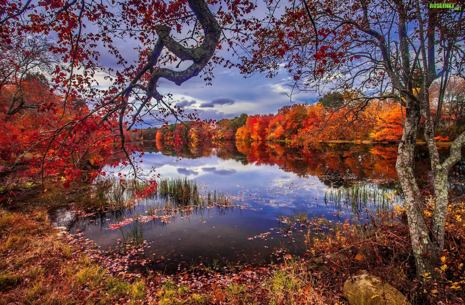 Rośliny: Jesień, Jezioro, Drzewa, Liście