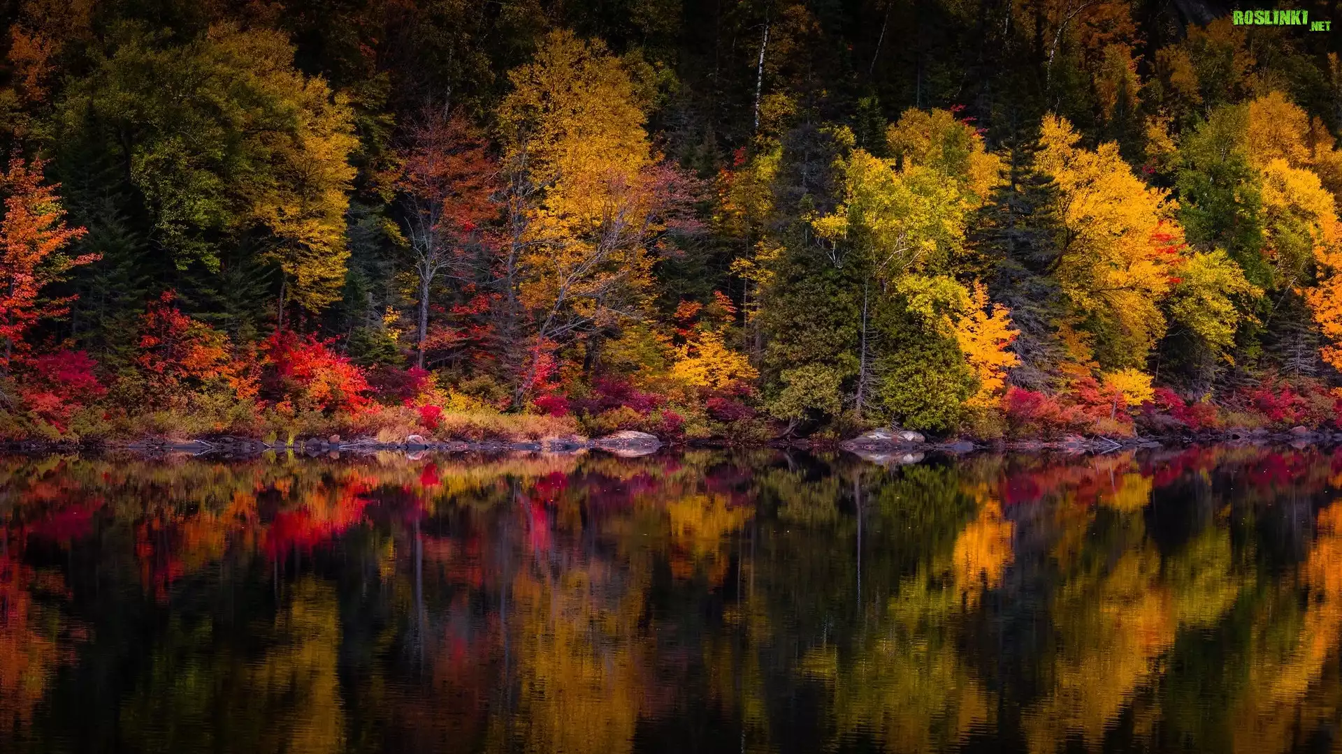 Rośliny: Jesień, Jezioro, Kolorowe, Drzewa, Odbicie