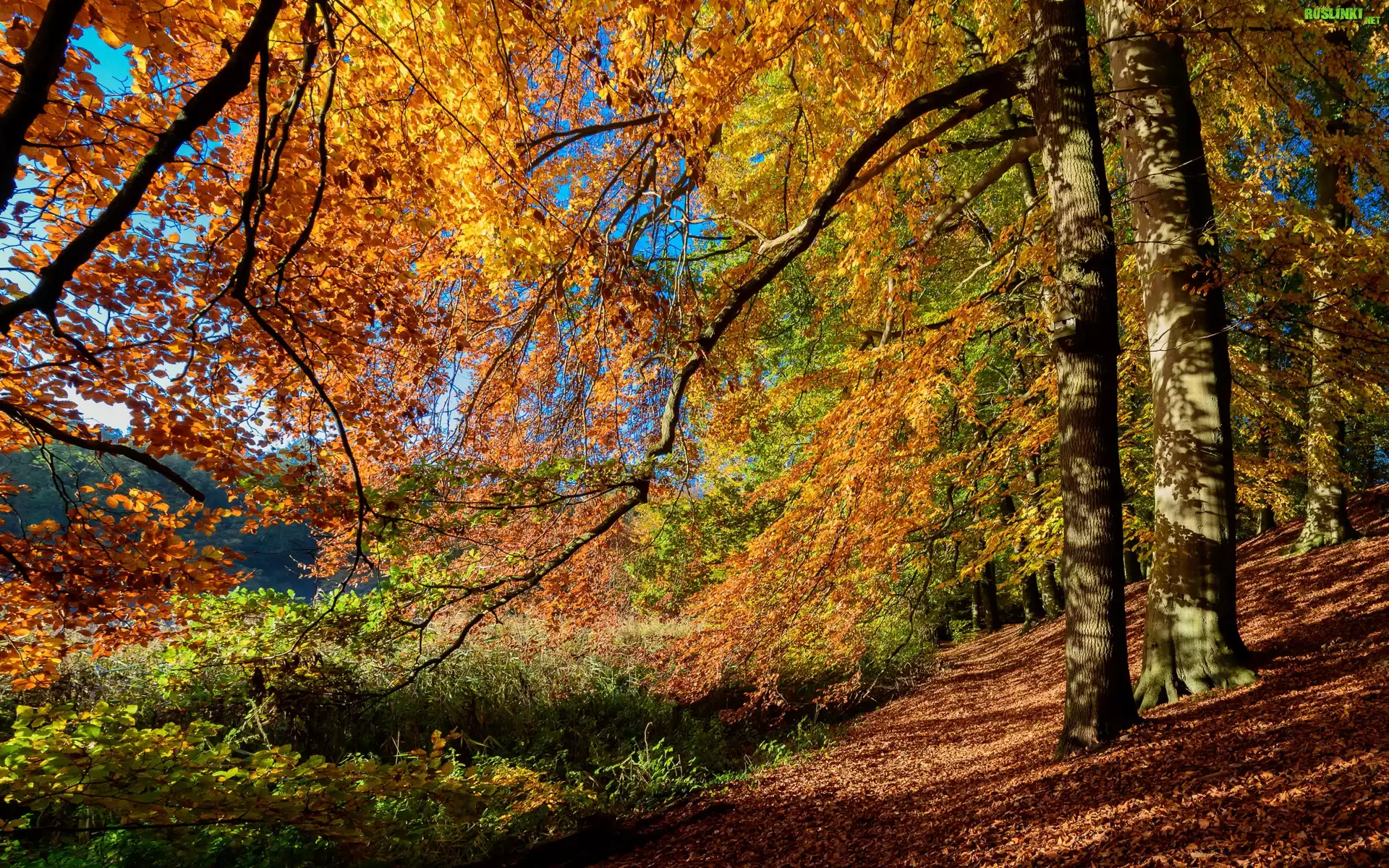 Rośliny: Jesień, Las, Drzewa, Gałęzie