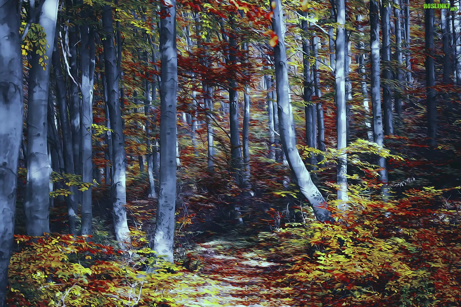 Rośliny: Jesień, Las, Drzewa, Grafika
