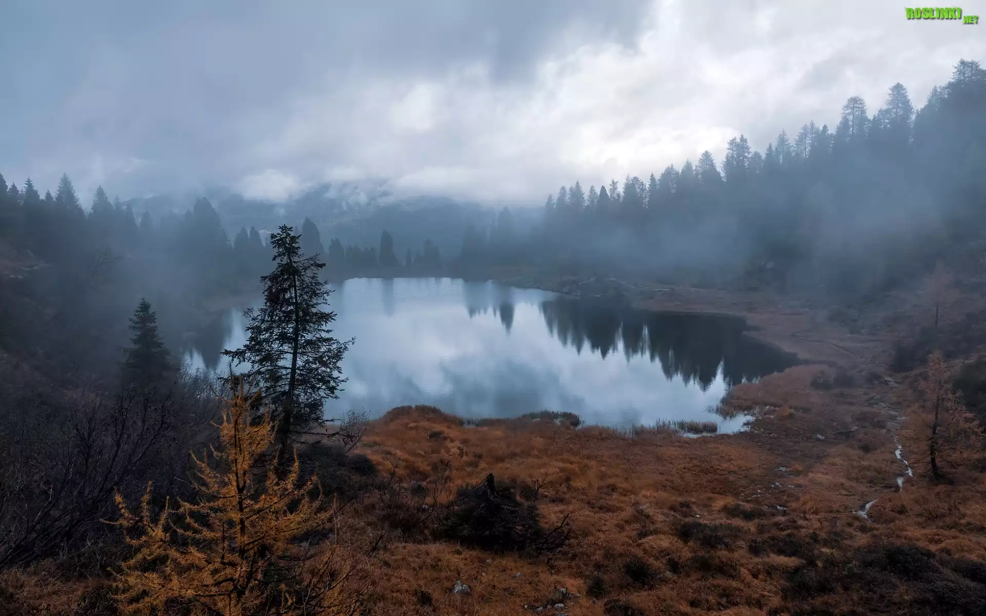 Rośliny: Jesień, Jezioro, Las, Drzewa, Mgła