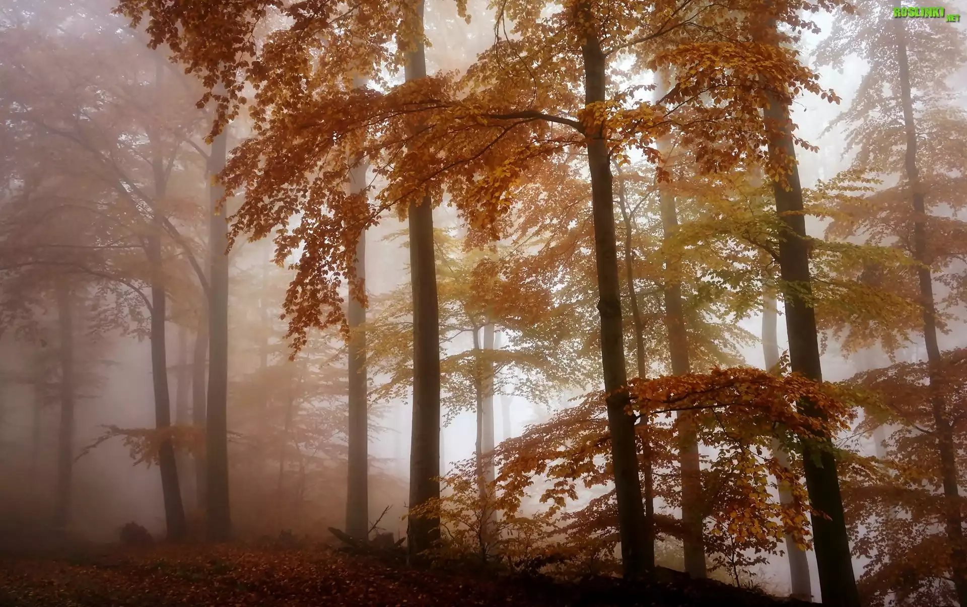 Rośliny: Jesień, Mgła, Las, Drzewa, Liście