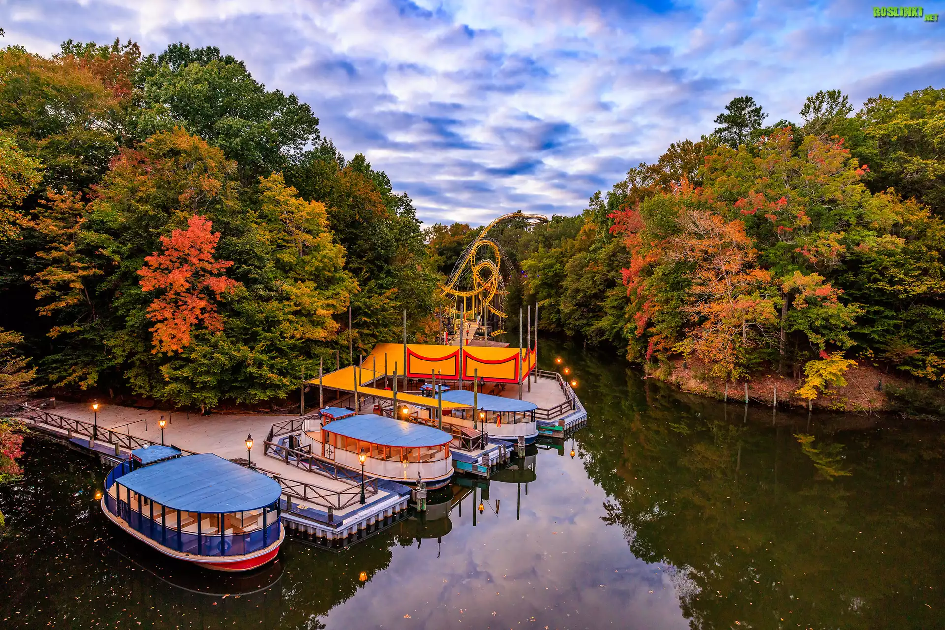 Rośliny: Staw, Łódki, Park, Jesień, Kolorowe, Drzewa