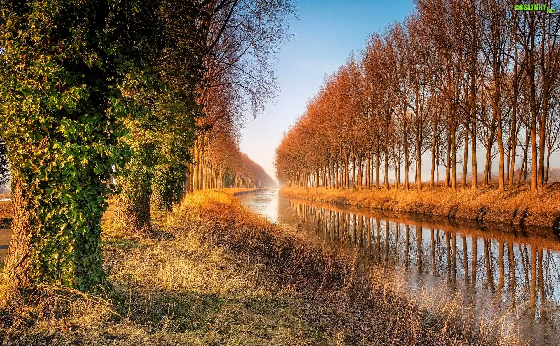 Rośliny: Jesień, Rzeka, Drzewa, Odbicie