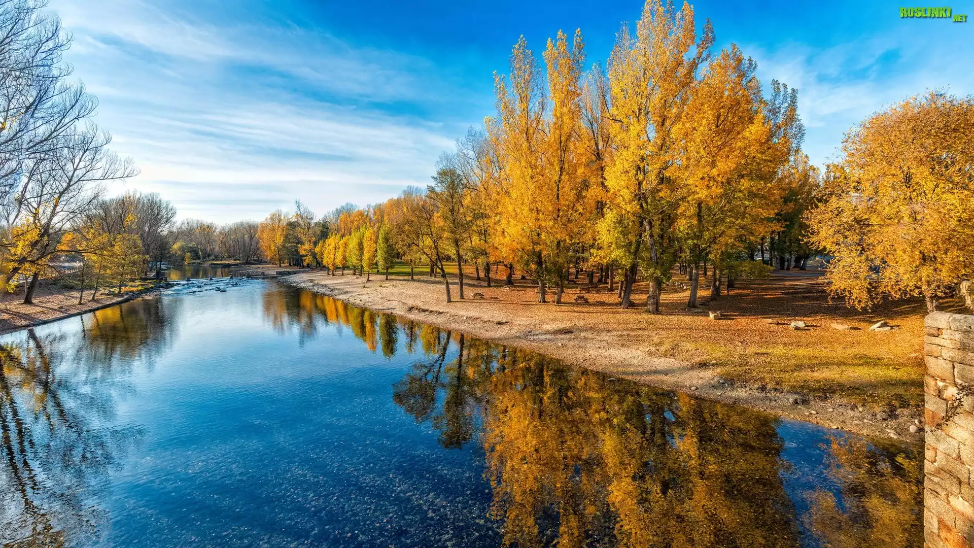 Rośliny: Jesień, Rzeka, Drzewa, Odbicie