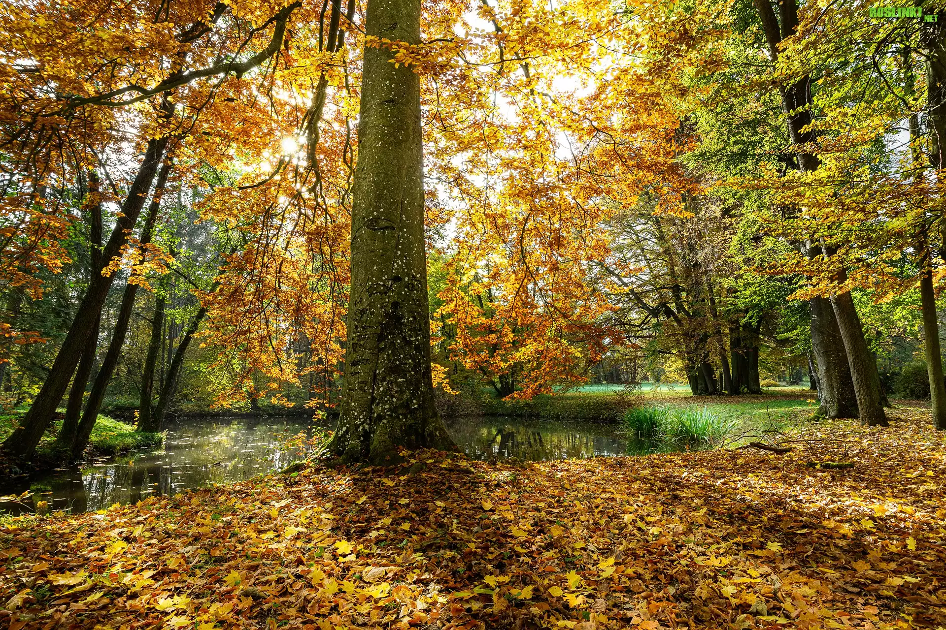 Rośliny: Jesień, Park, Słoneczne, Światło, Drzewa, Staw